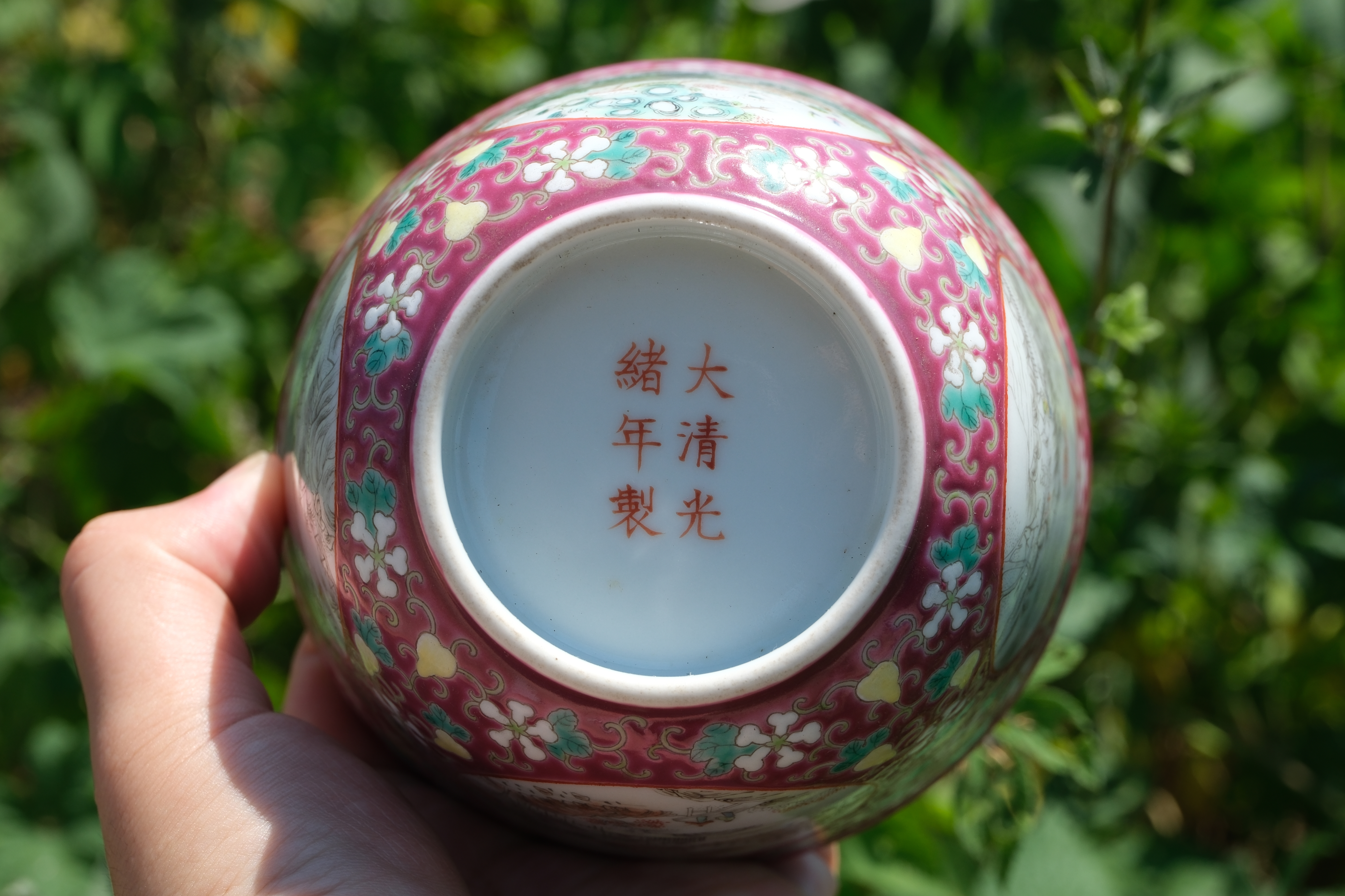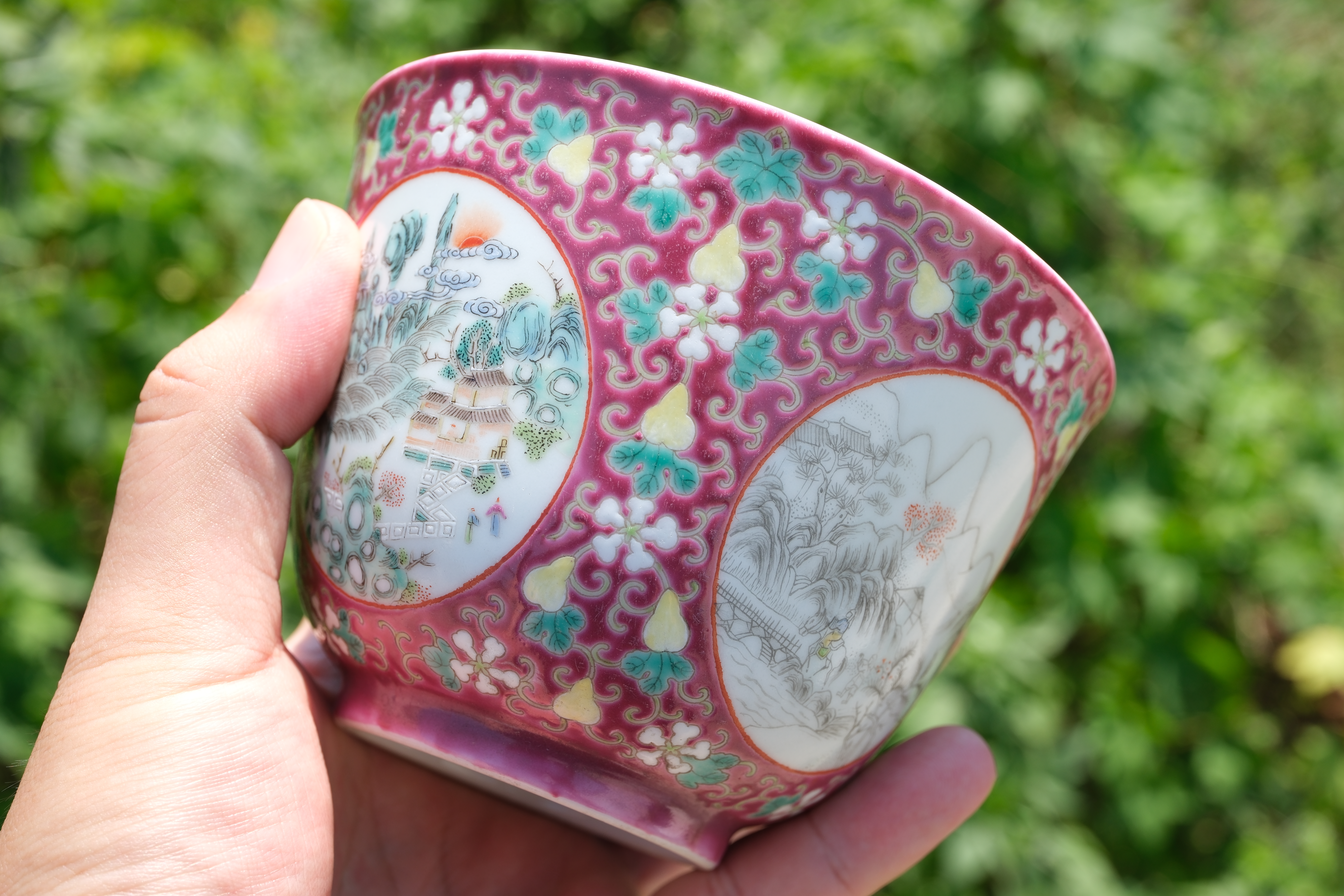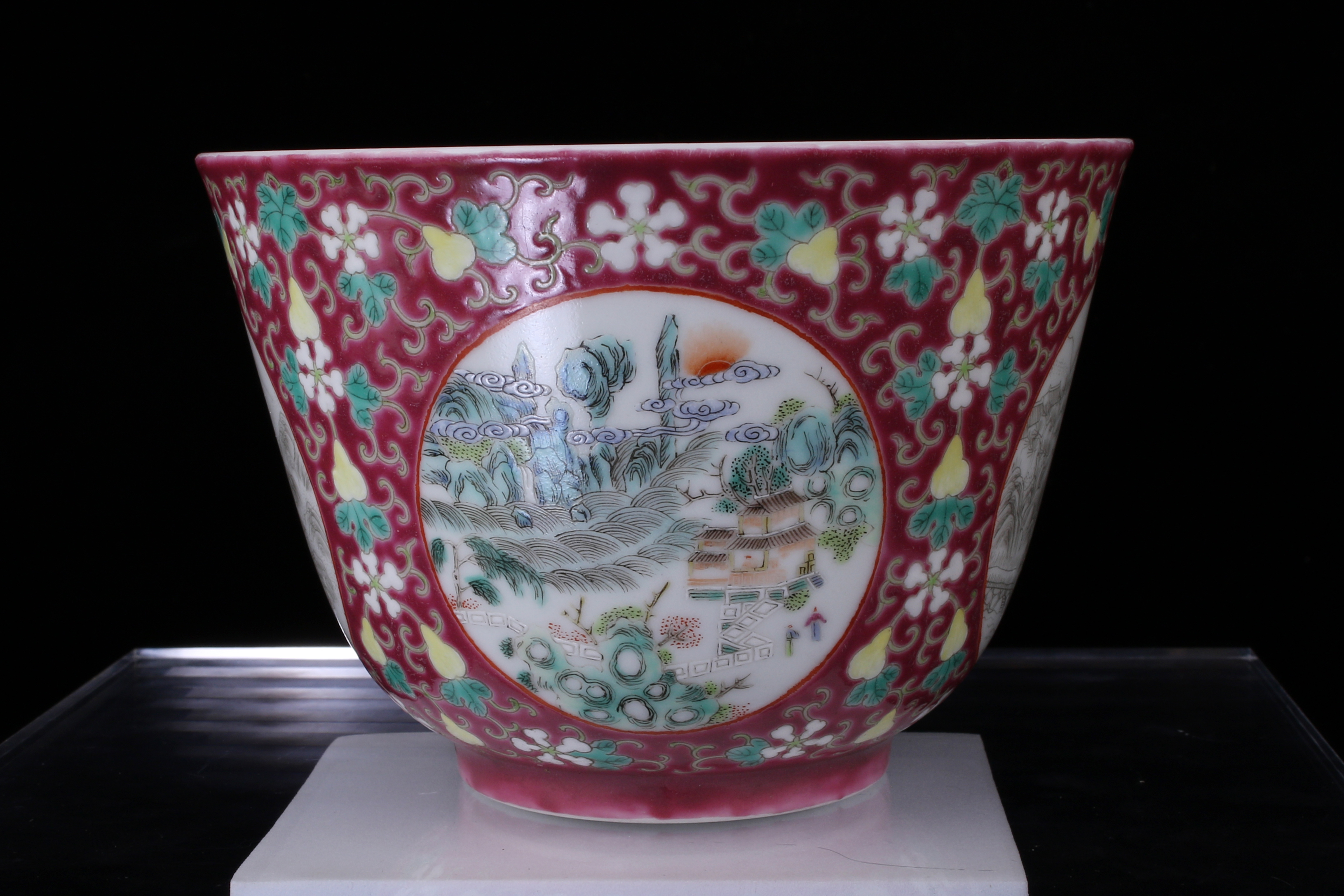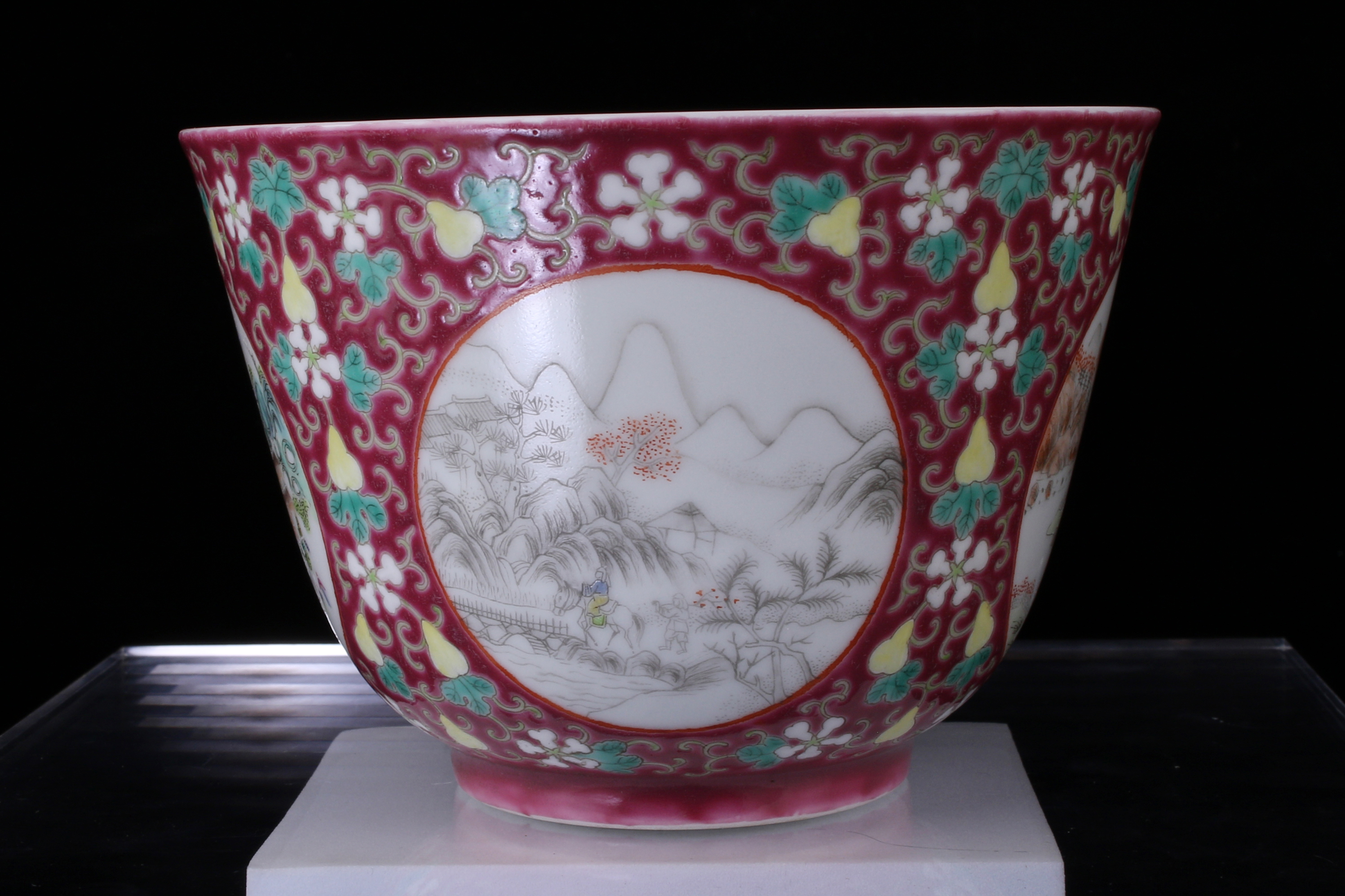 0197 A ruby-ground famille-rose figural bowl, Late Qing