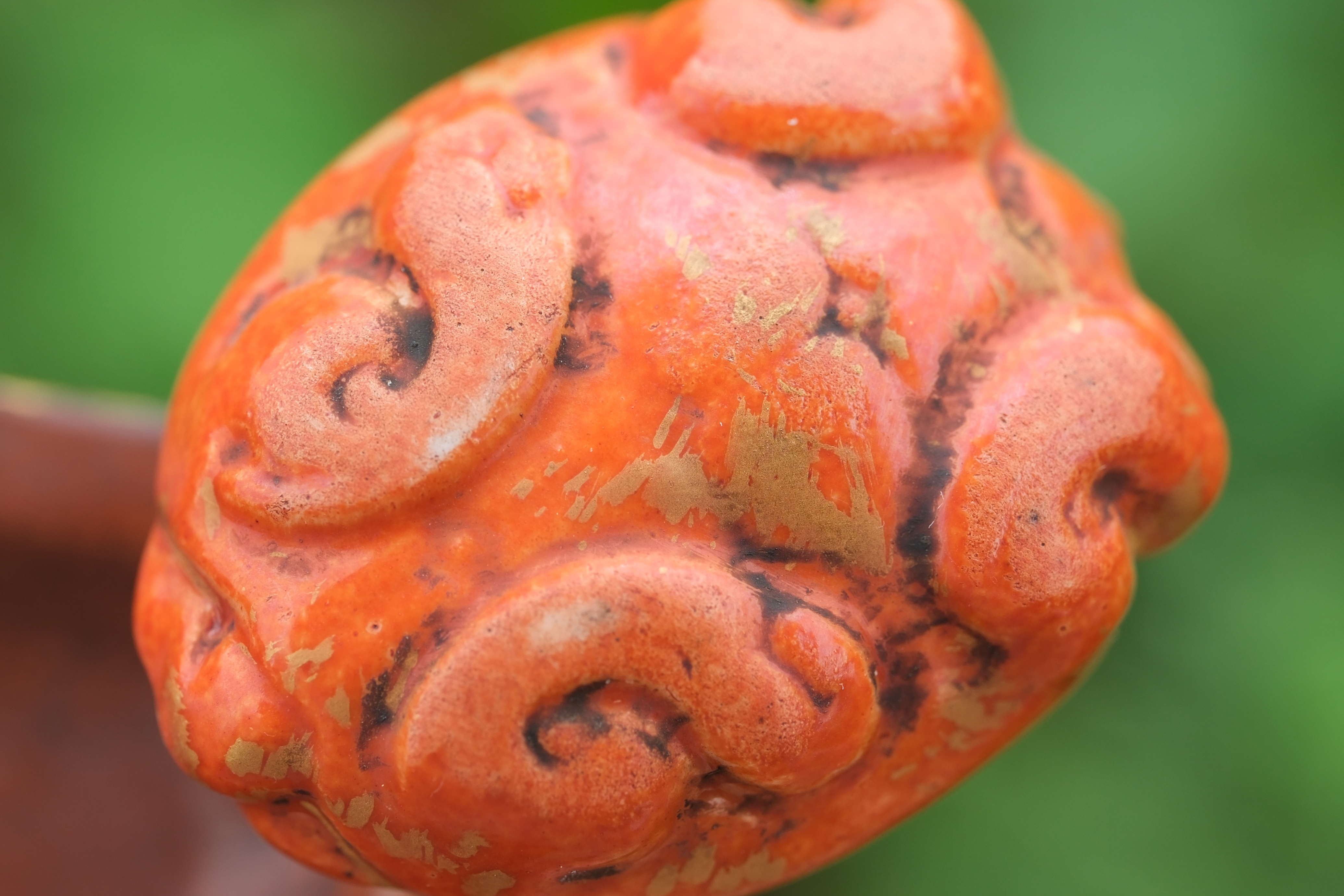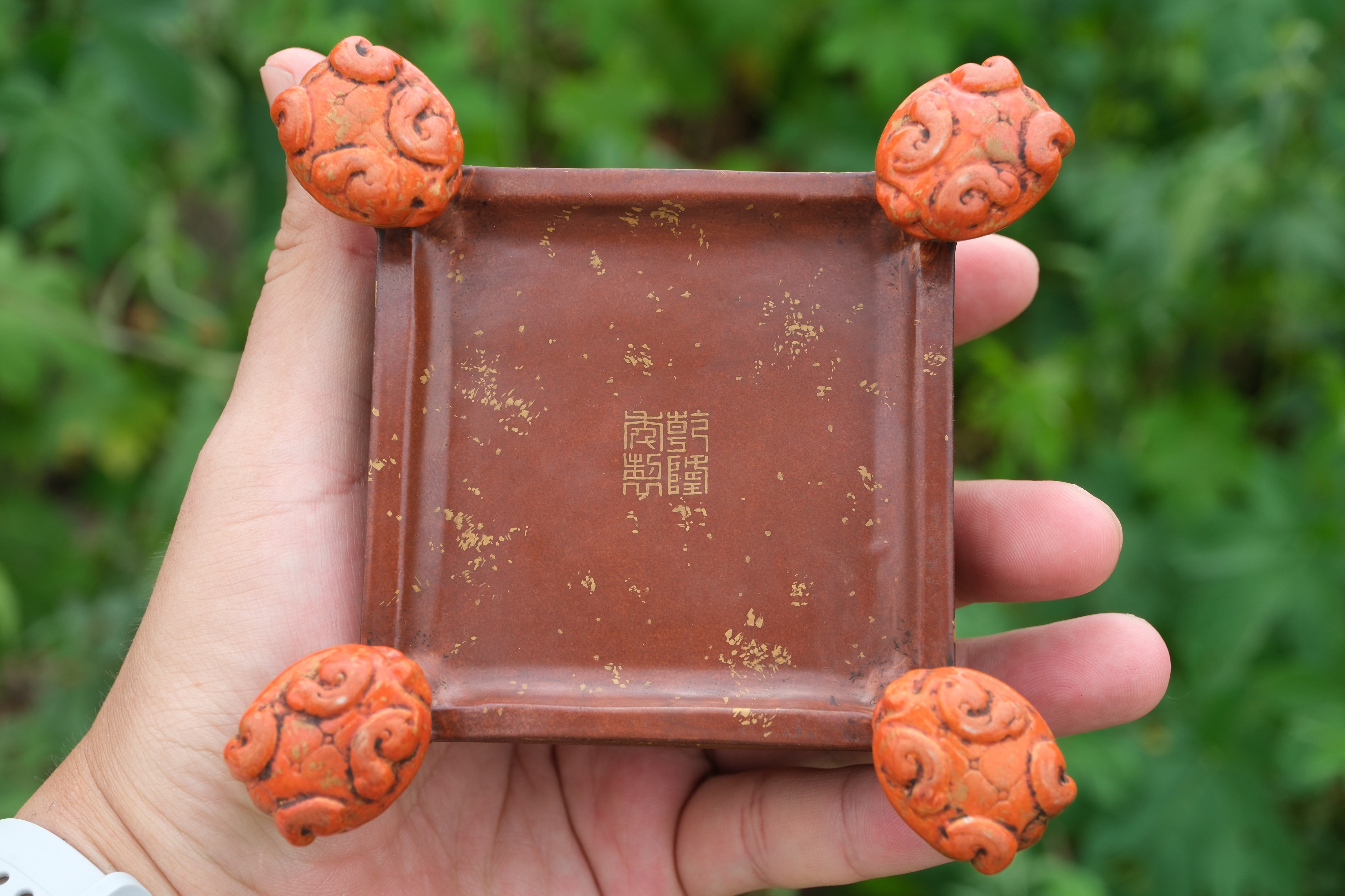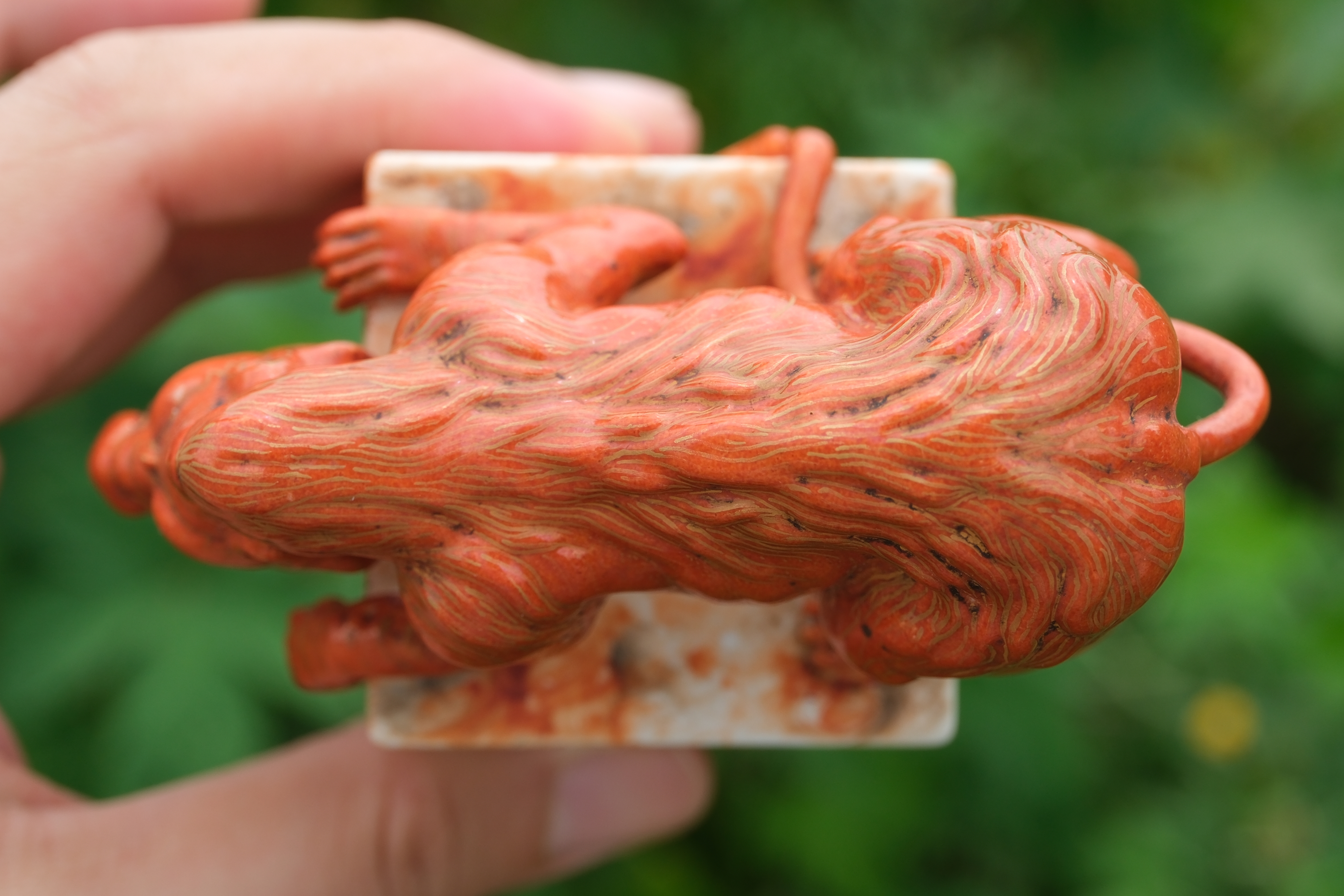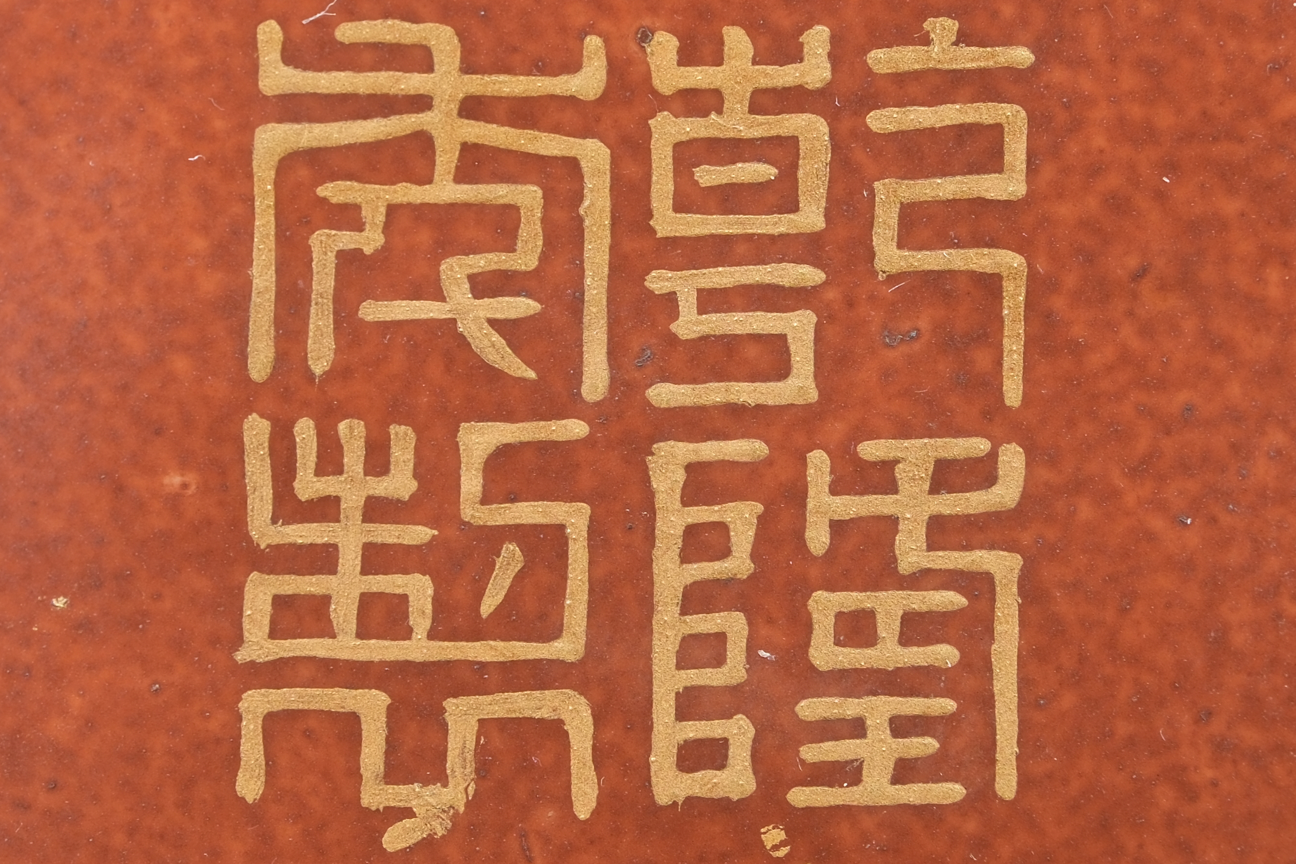 0214 Qianlong-Mark Porcelain Censer with Foo Lion Finials & Wood-Grain Glaze