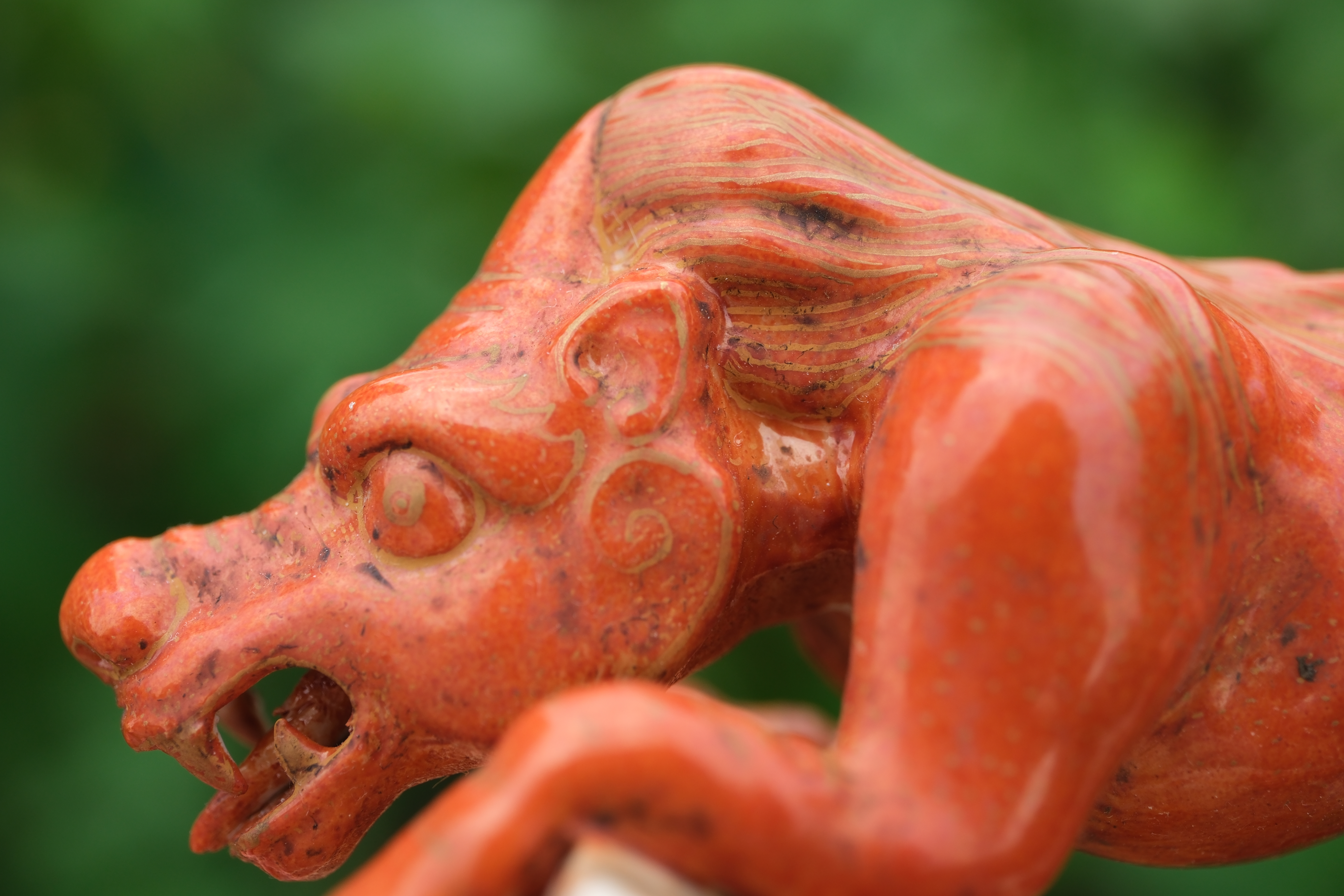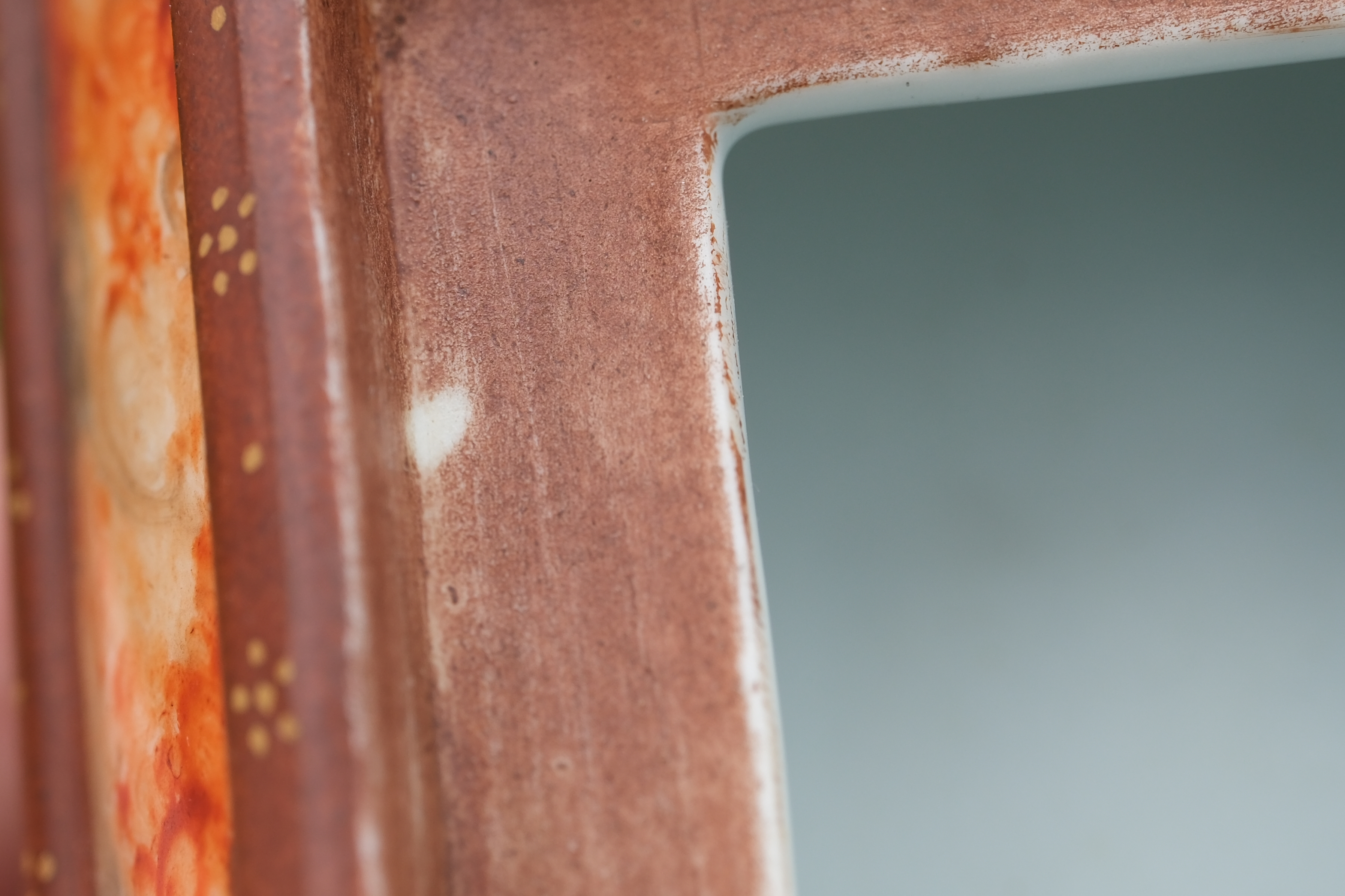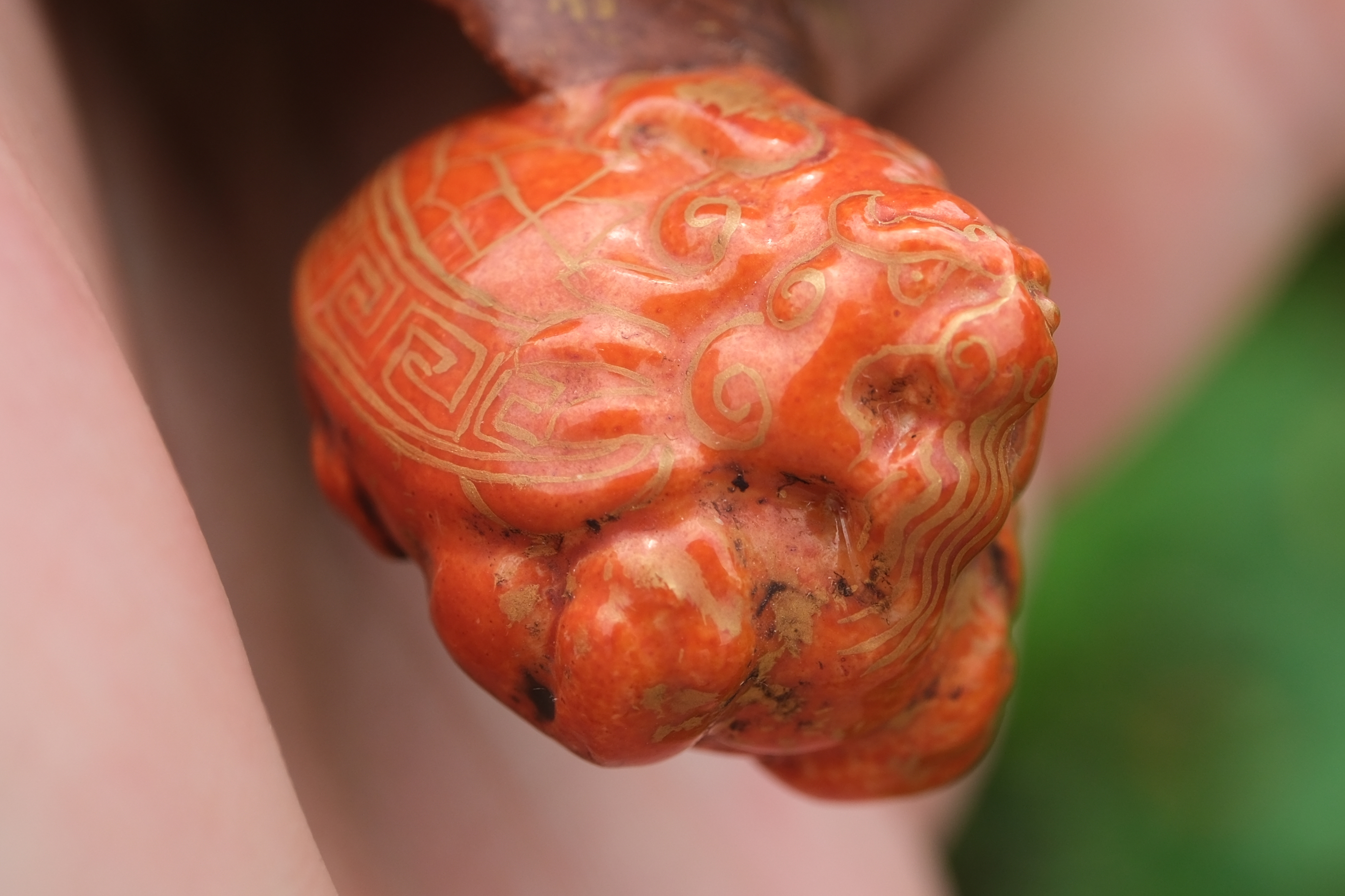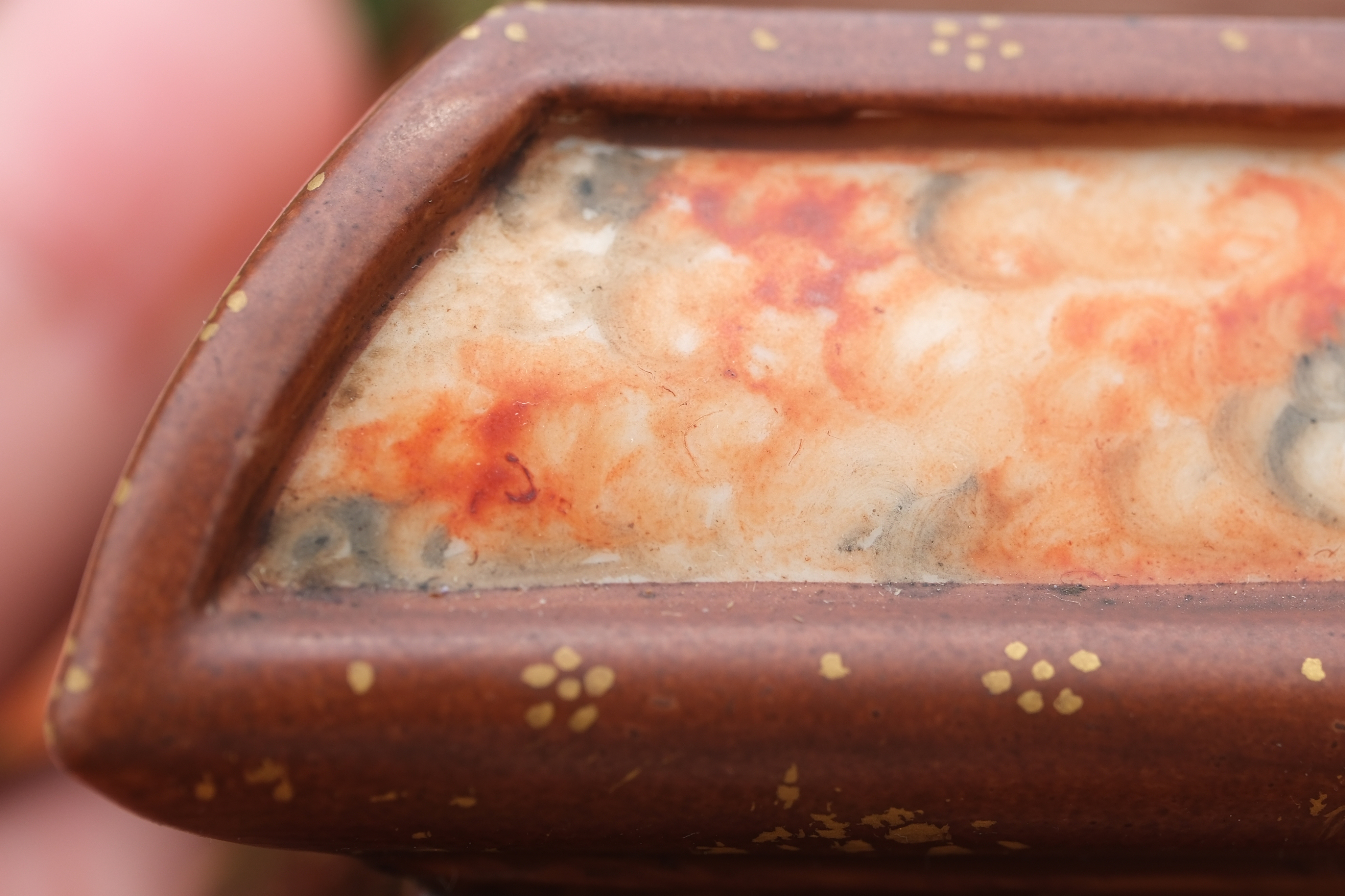 0214 Qianlong-Mark Porcelain Censer with Foo Lion Finials & Wood-Grain Glaze