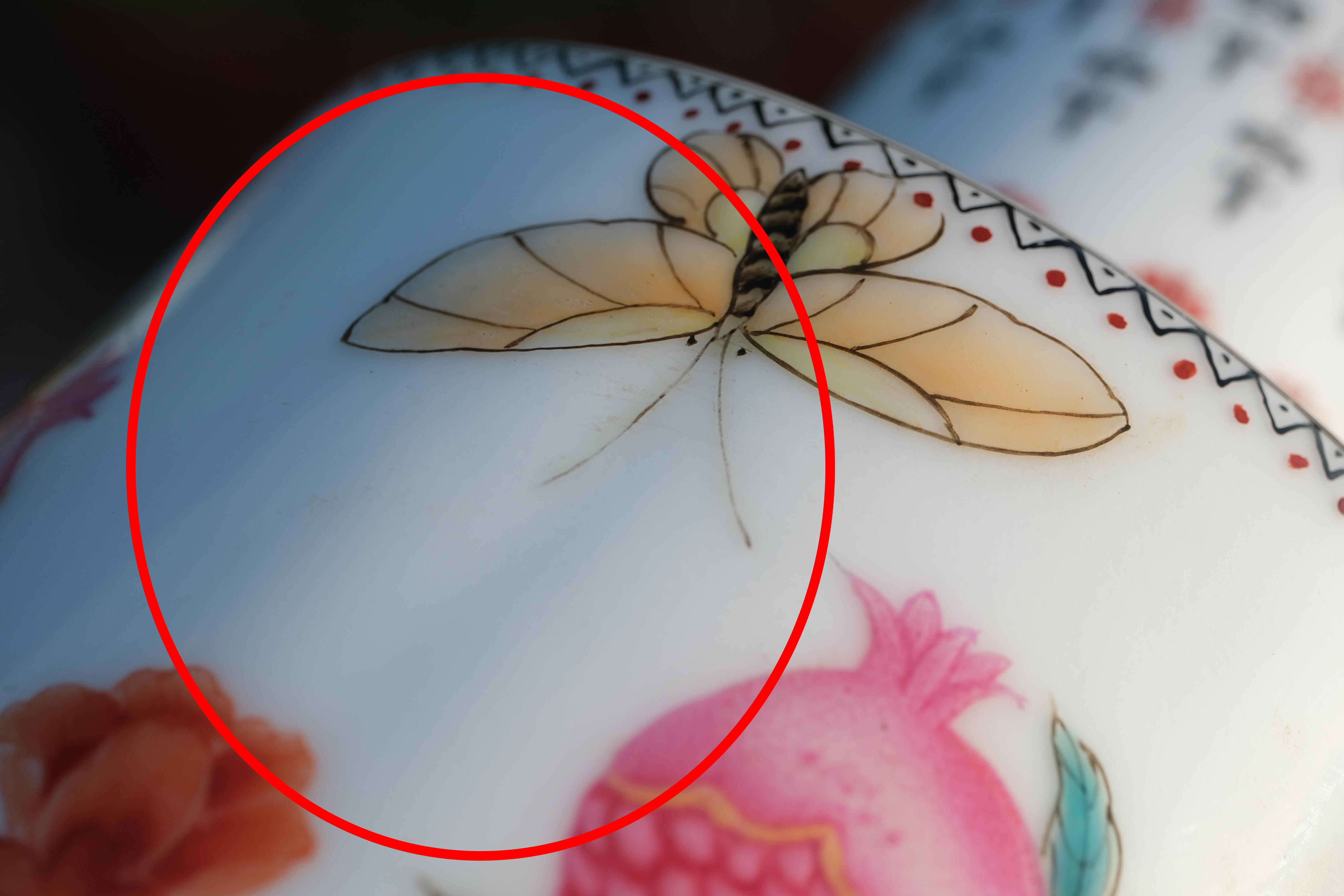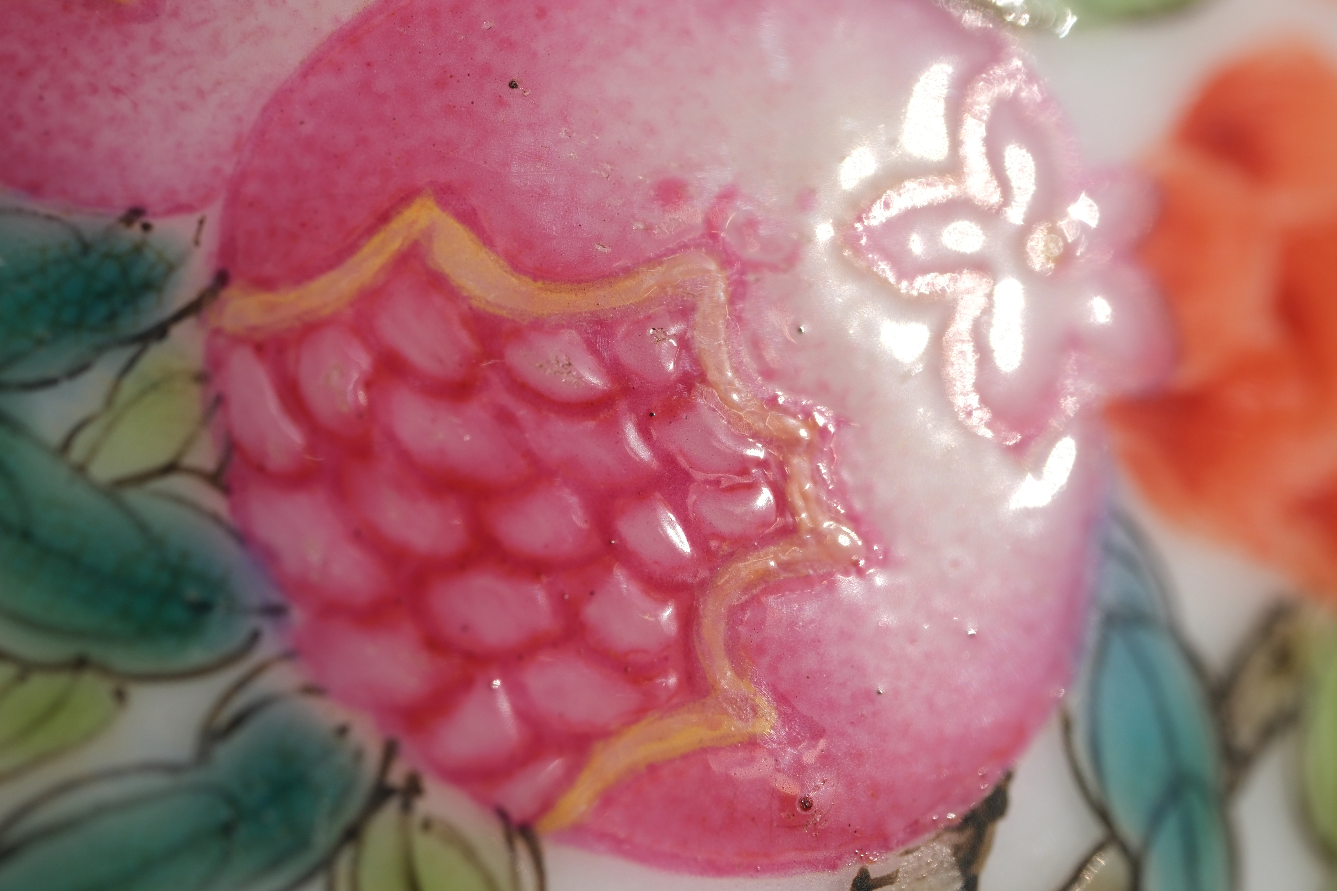 0228 Qianlong Famille Rose Mallet-Form Vase with Pomegranate and Bat – Damaged