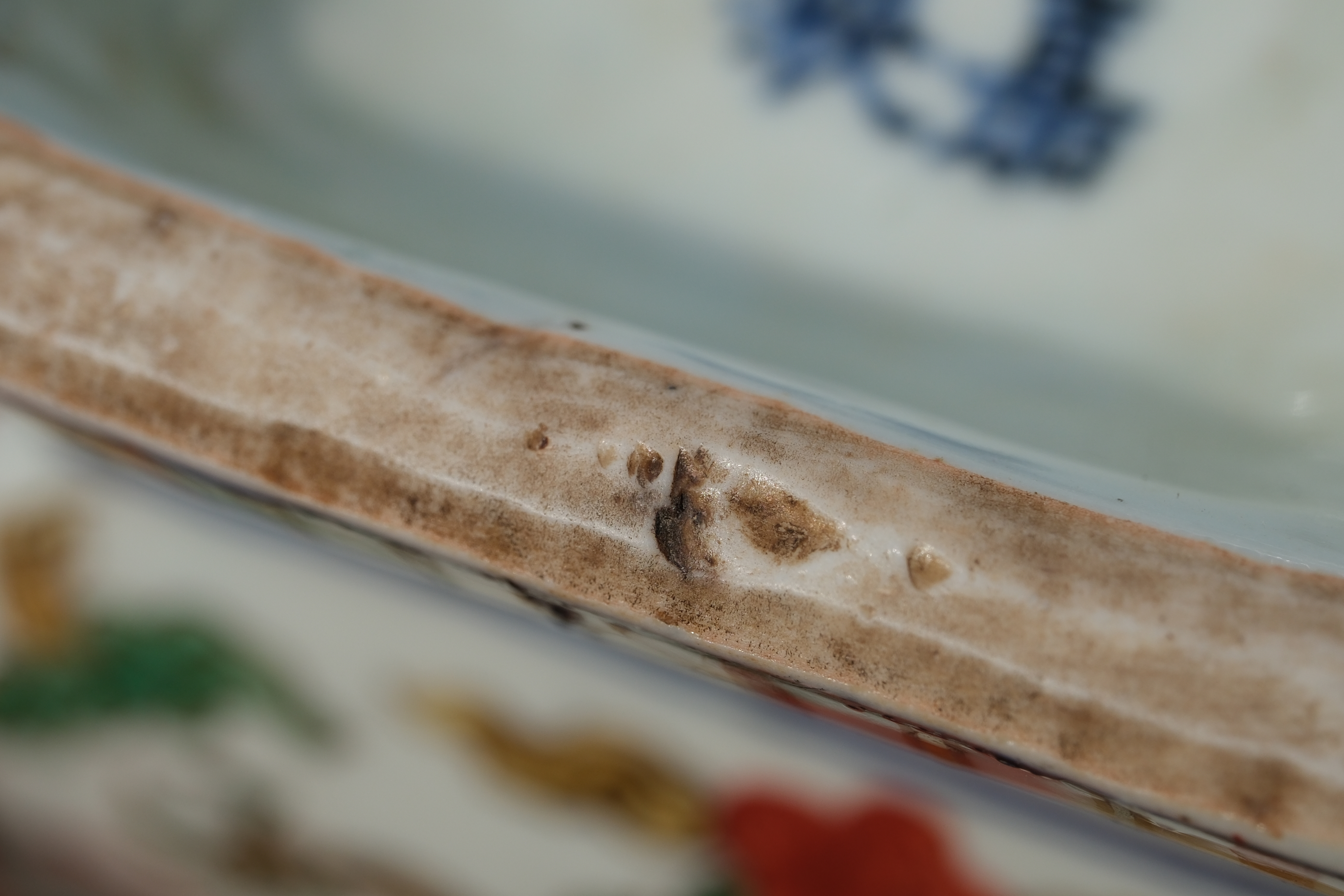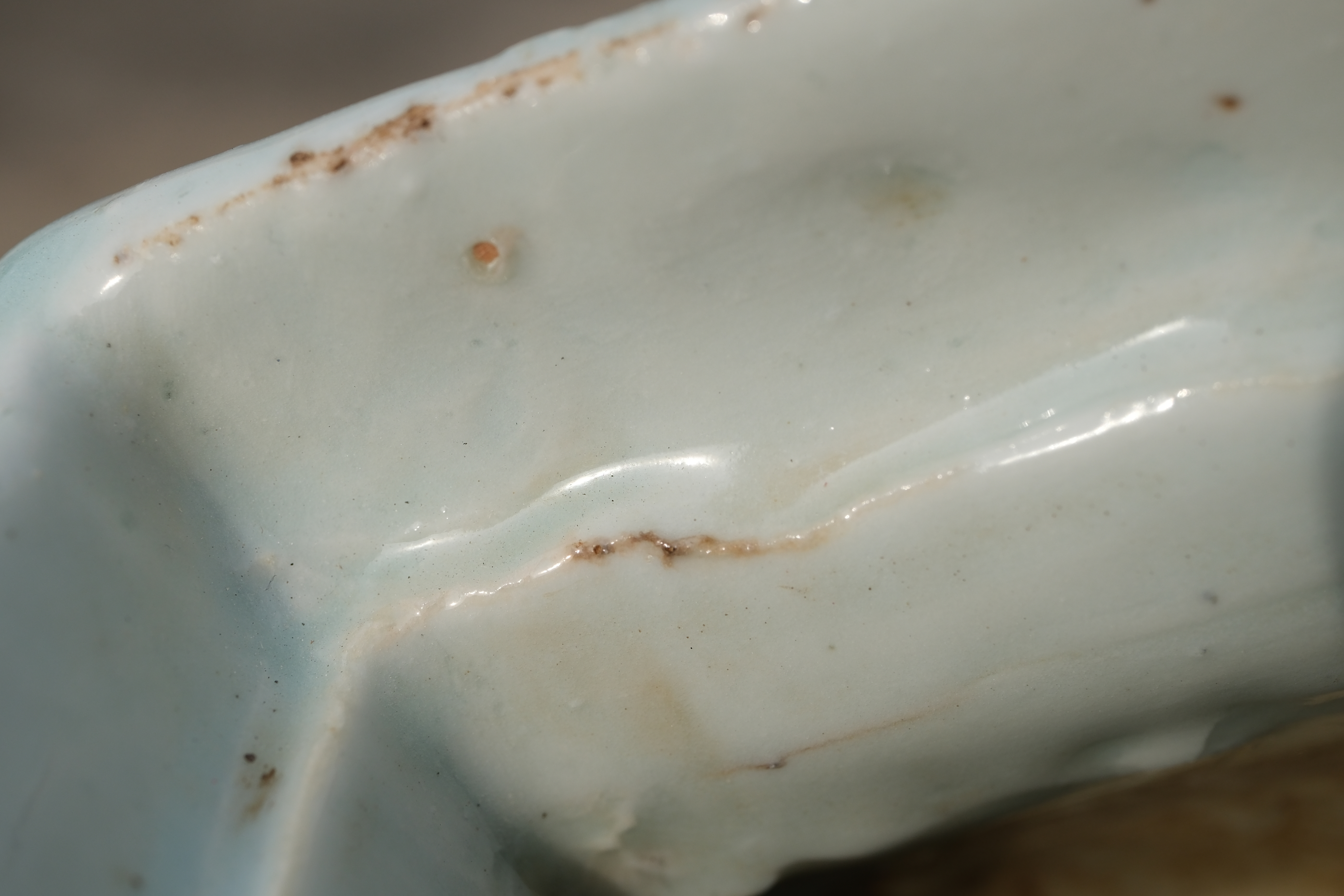 0214 Qianlong-Mark Porcelain Censer with Foo Lion Finials & Wood-Grain Glaze