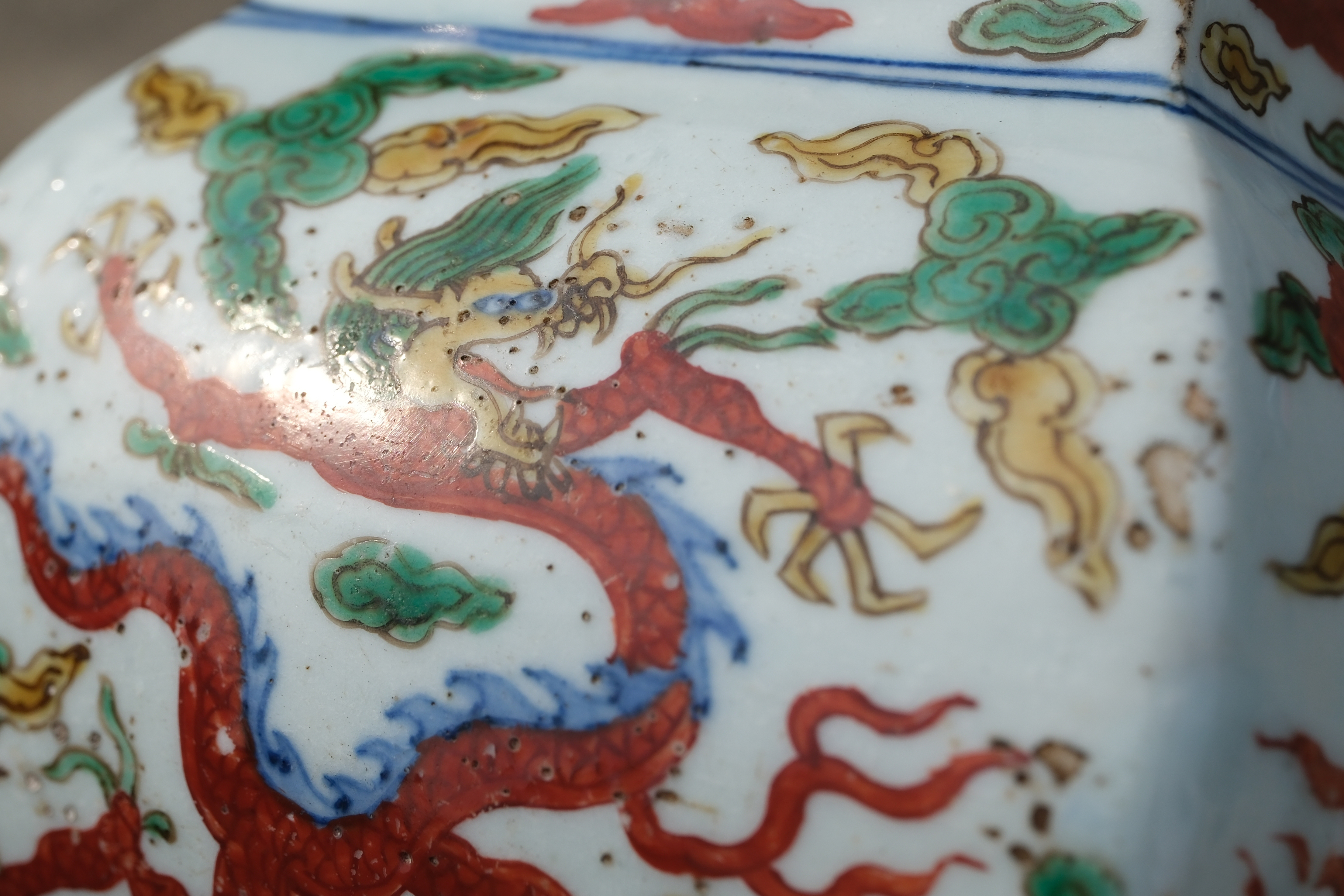 0236 Wucai Covered Jar with Dragon and Cloud Motifs