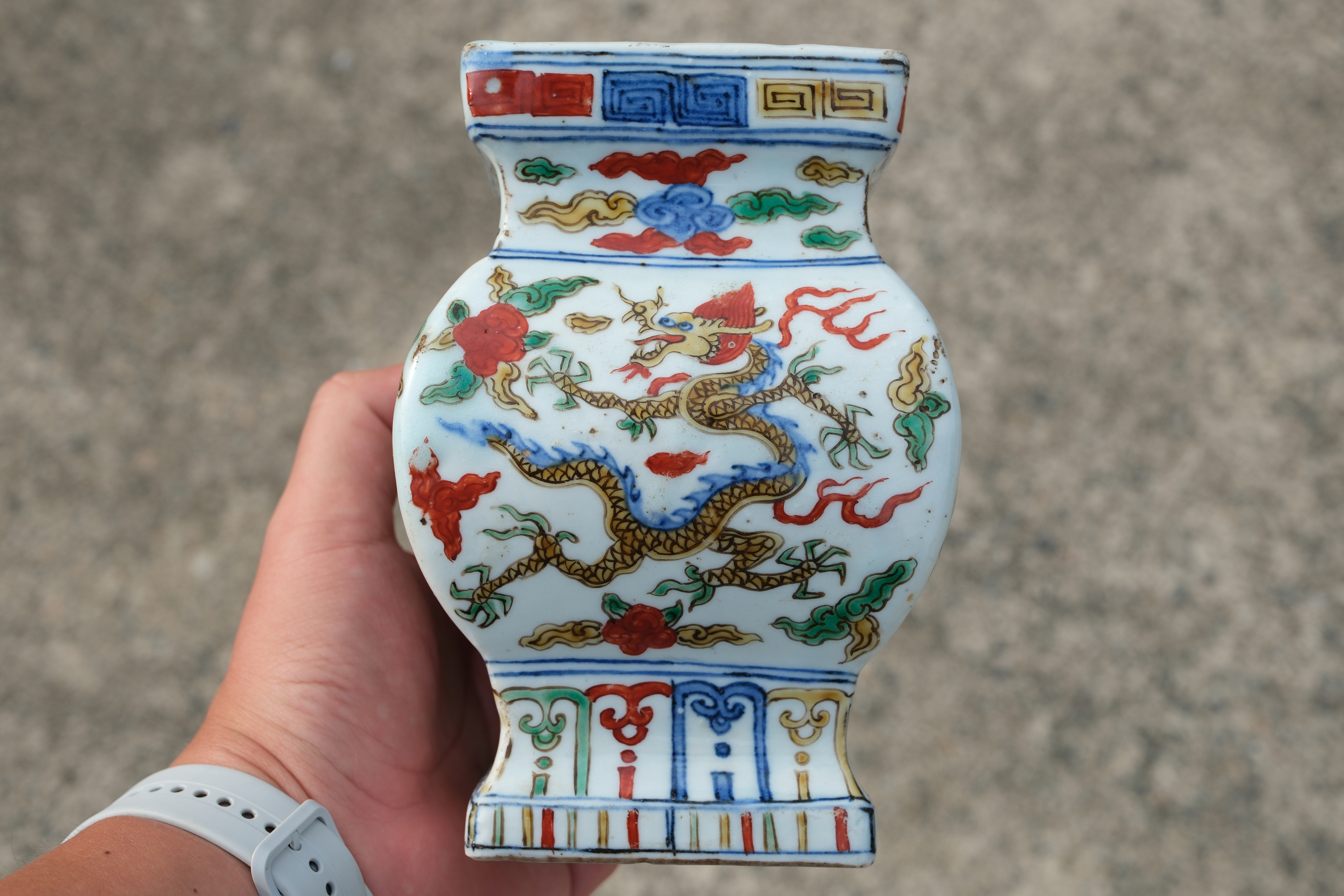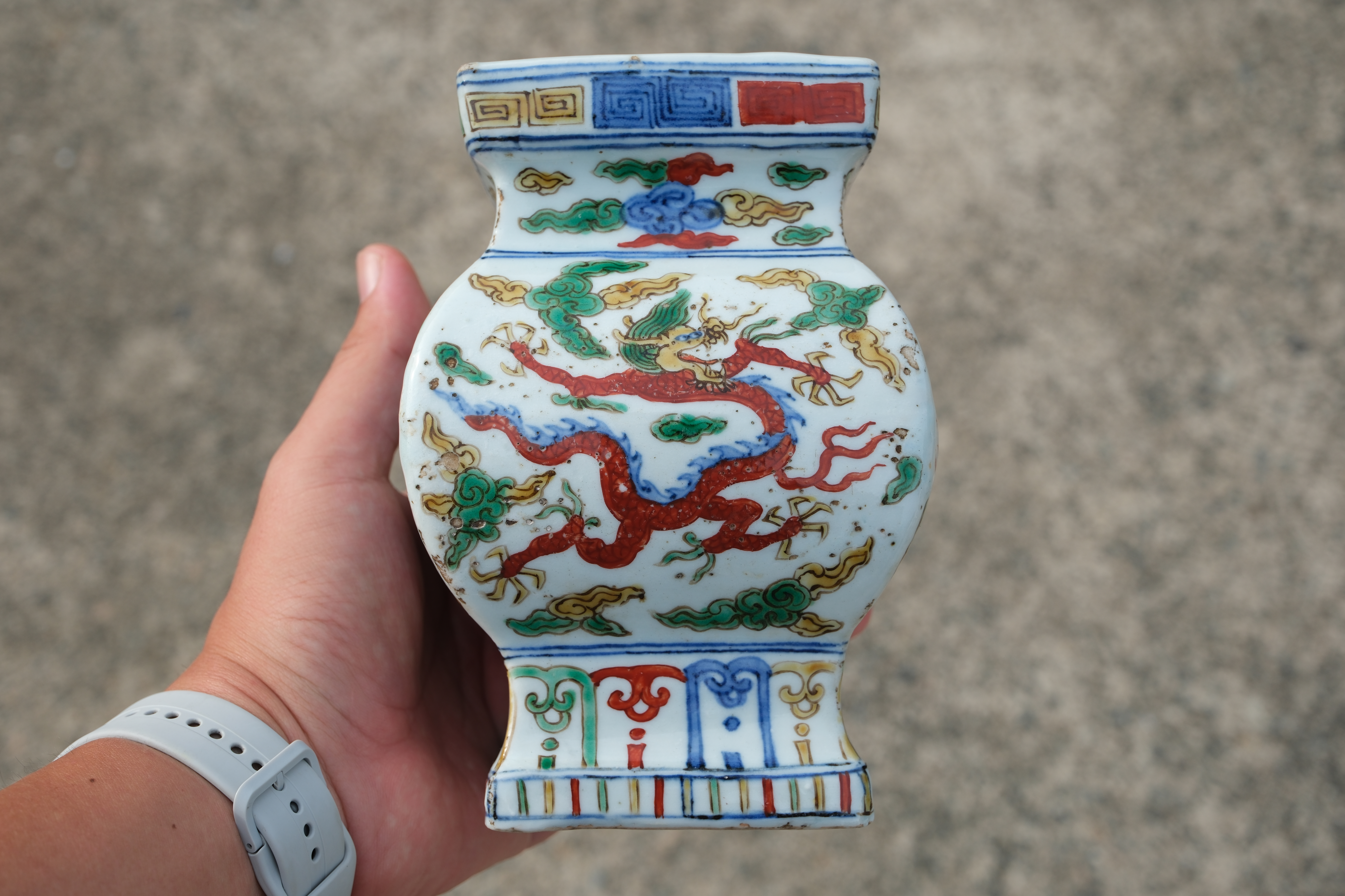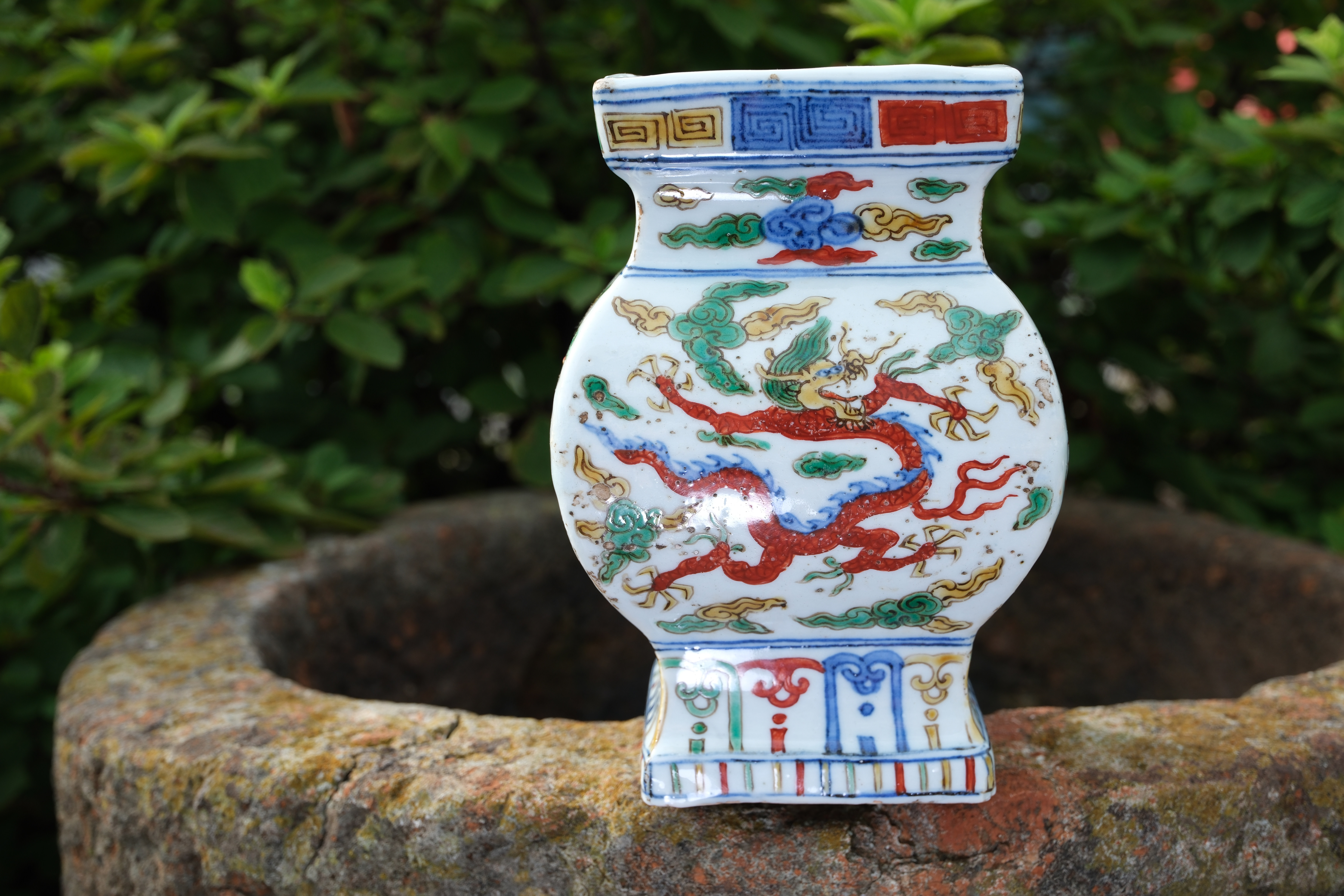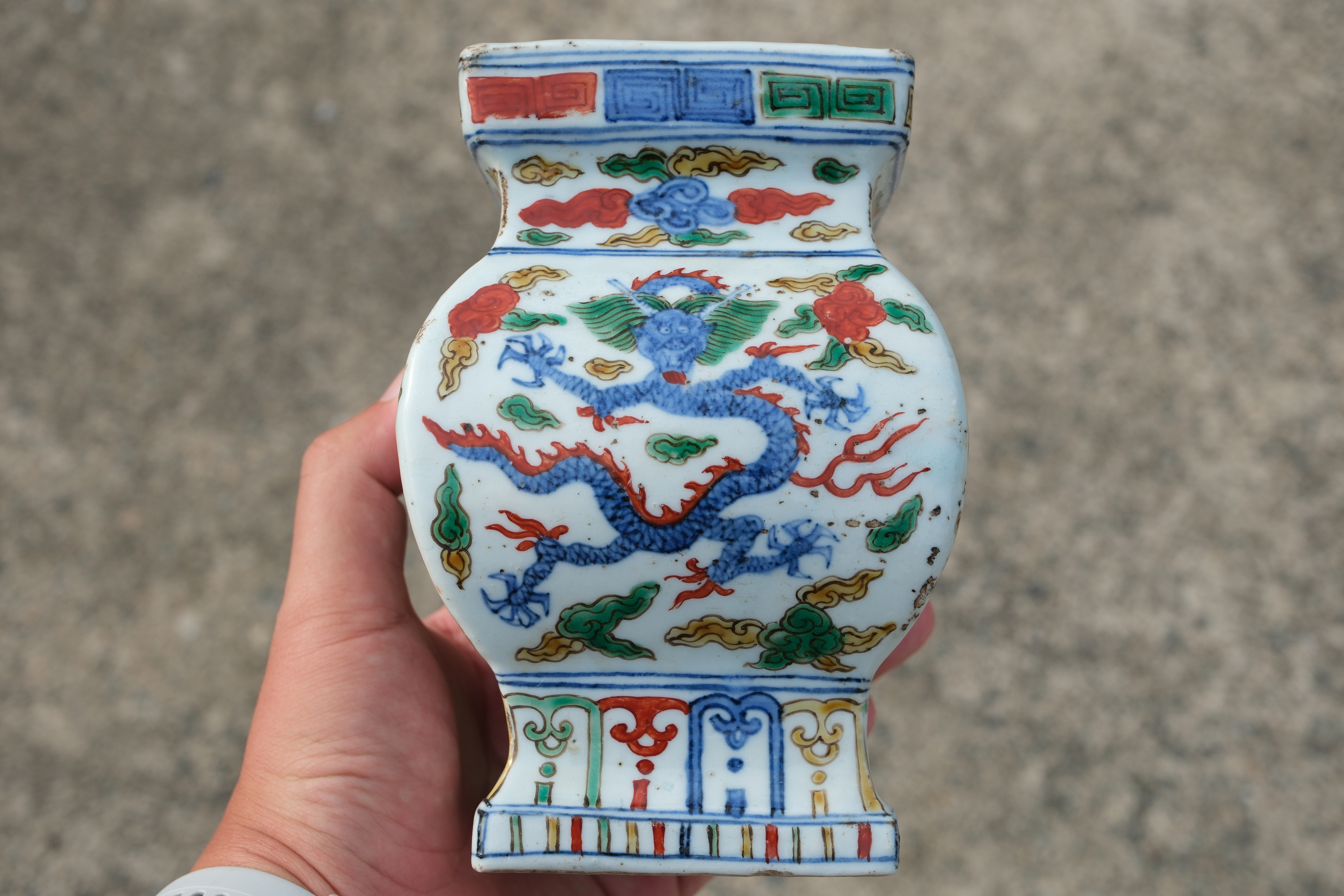 0229 WUCAI SQUARE JAR with Cloud and Dragon