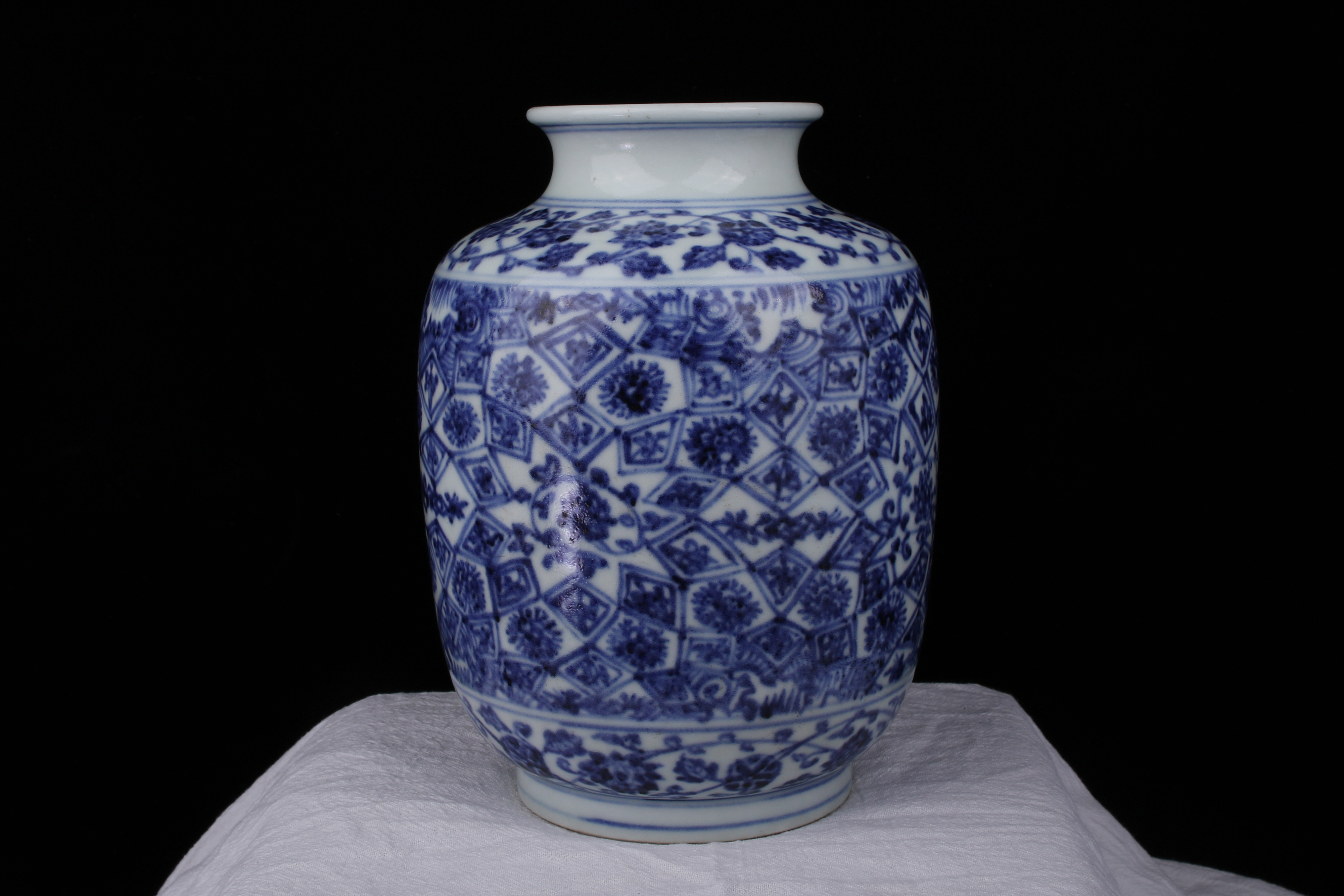 0353 Xuande Mark, Blue and White Lantern Vase with Floral Scroll