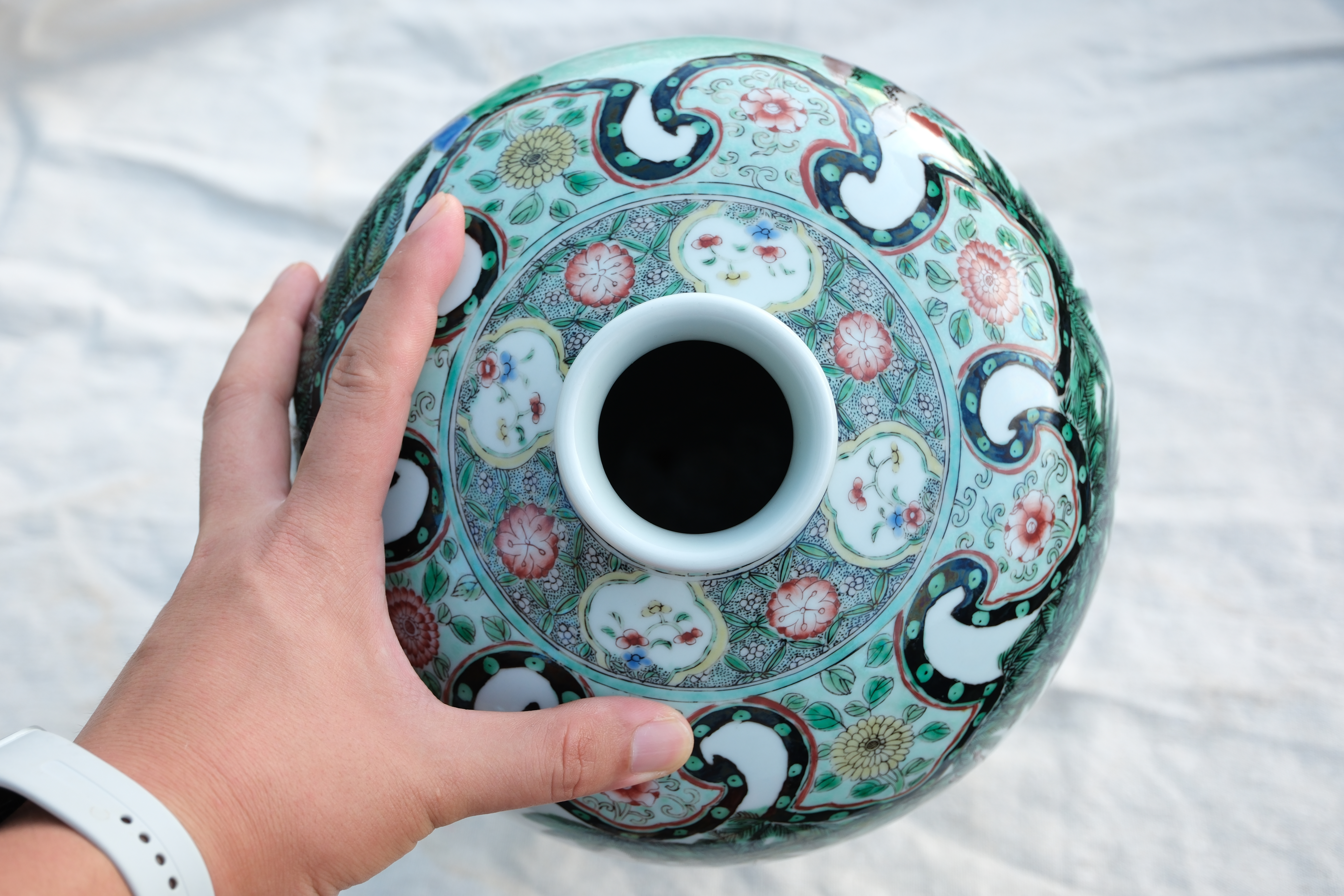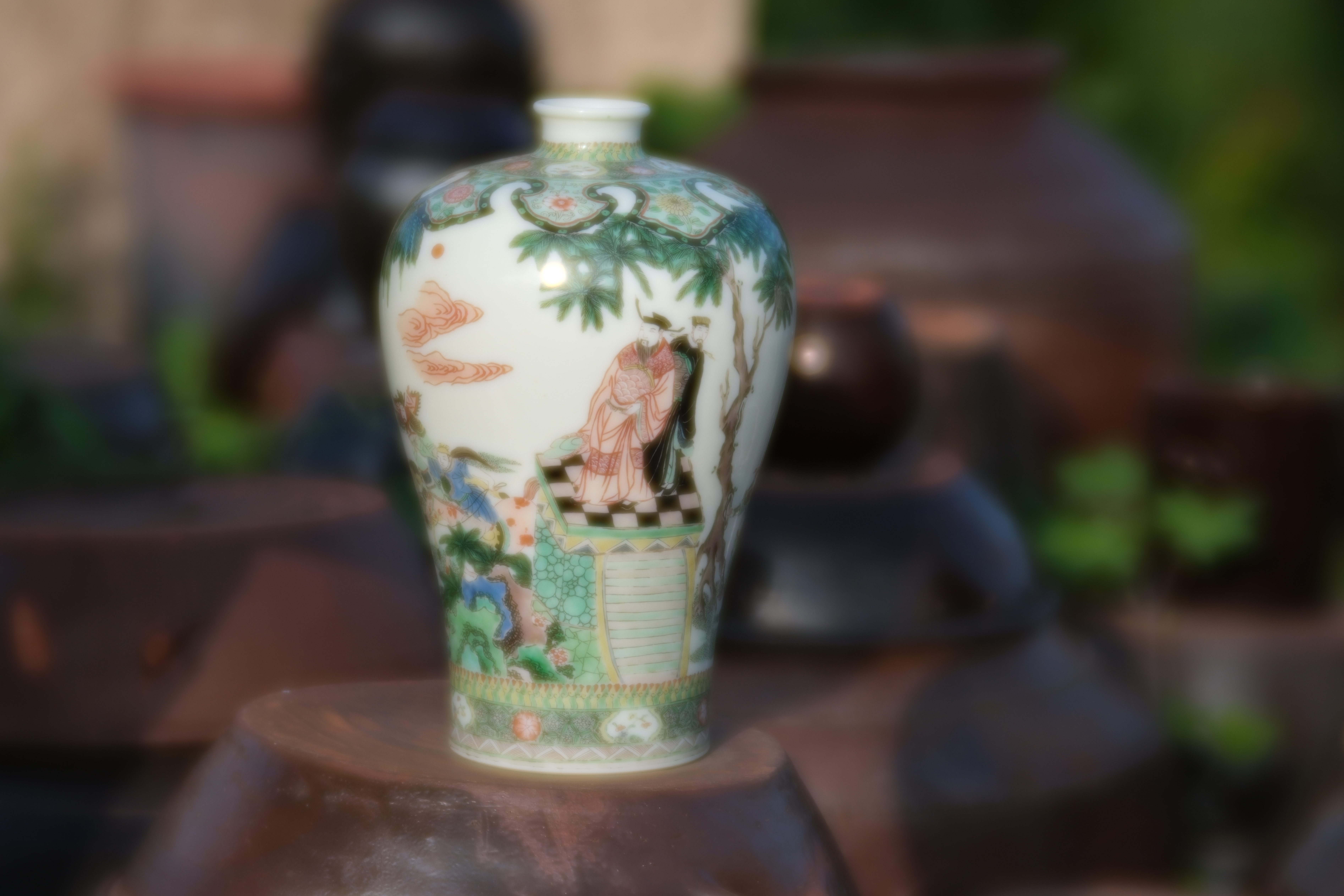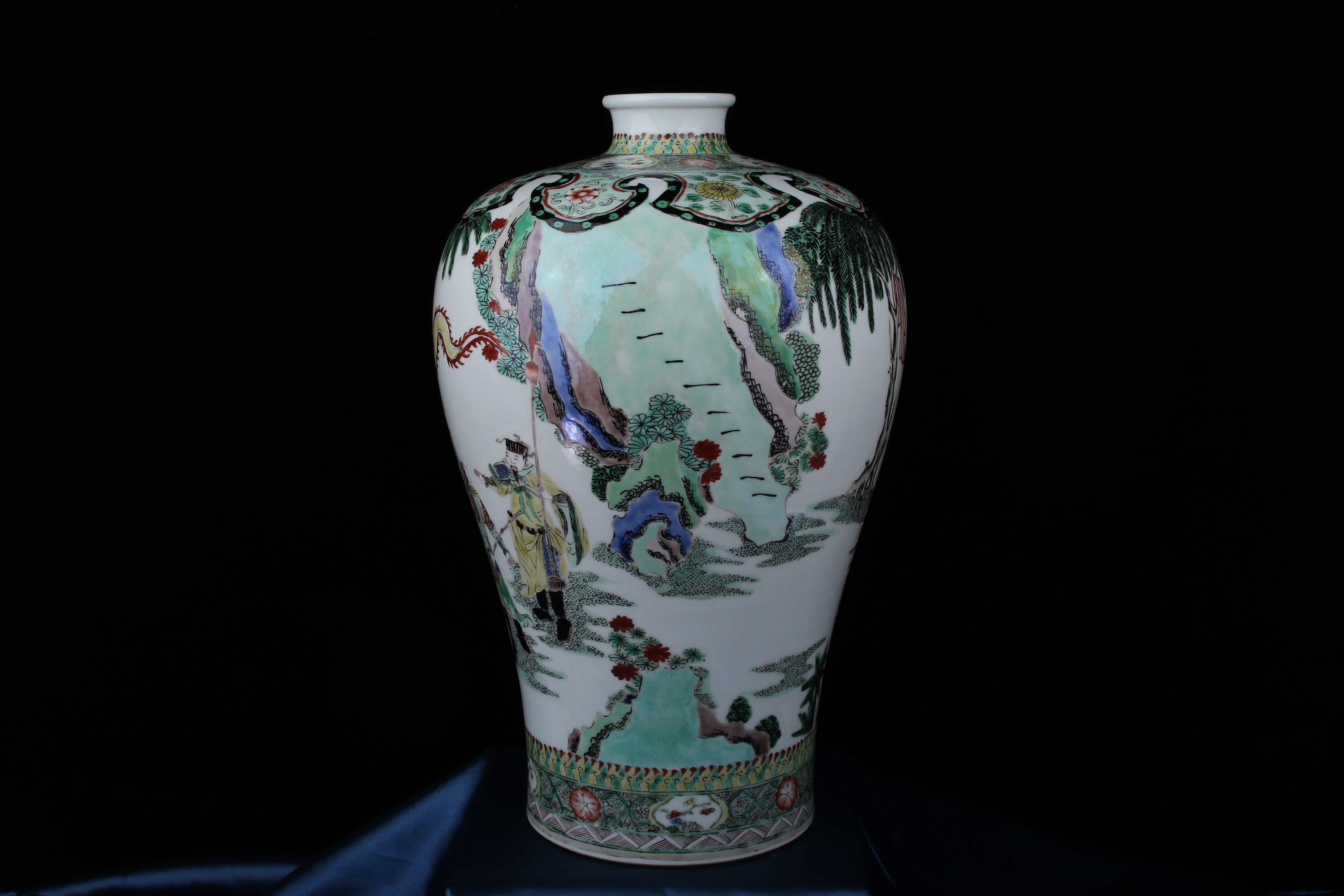 0438 Kangxi Famille Verte Meiping Vase Depicting Scholars