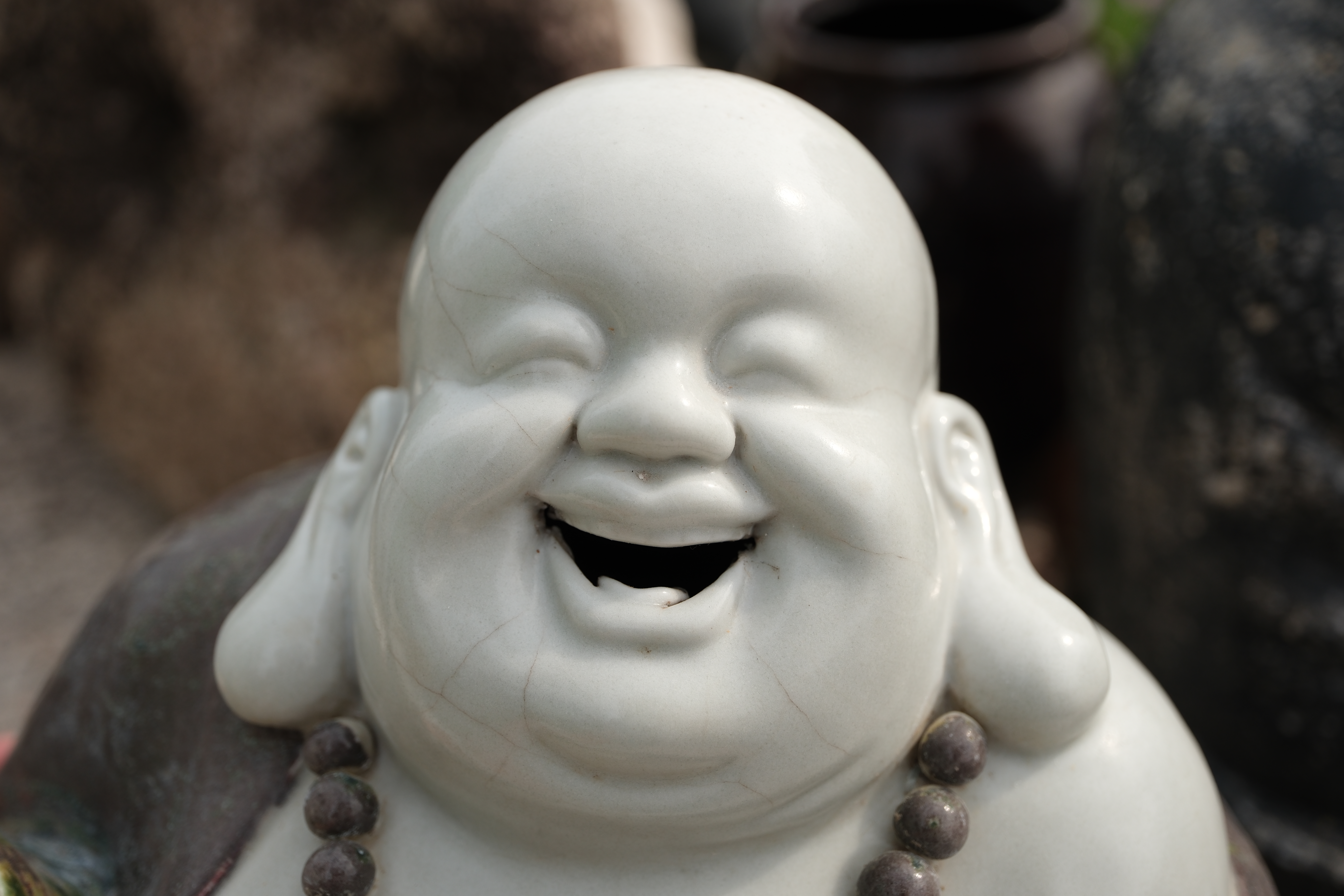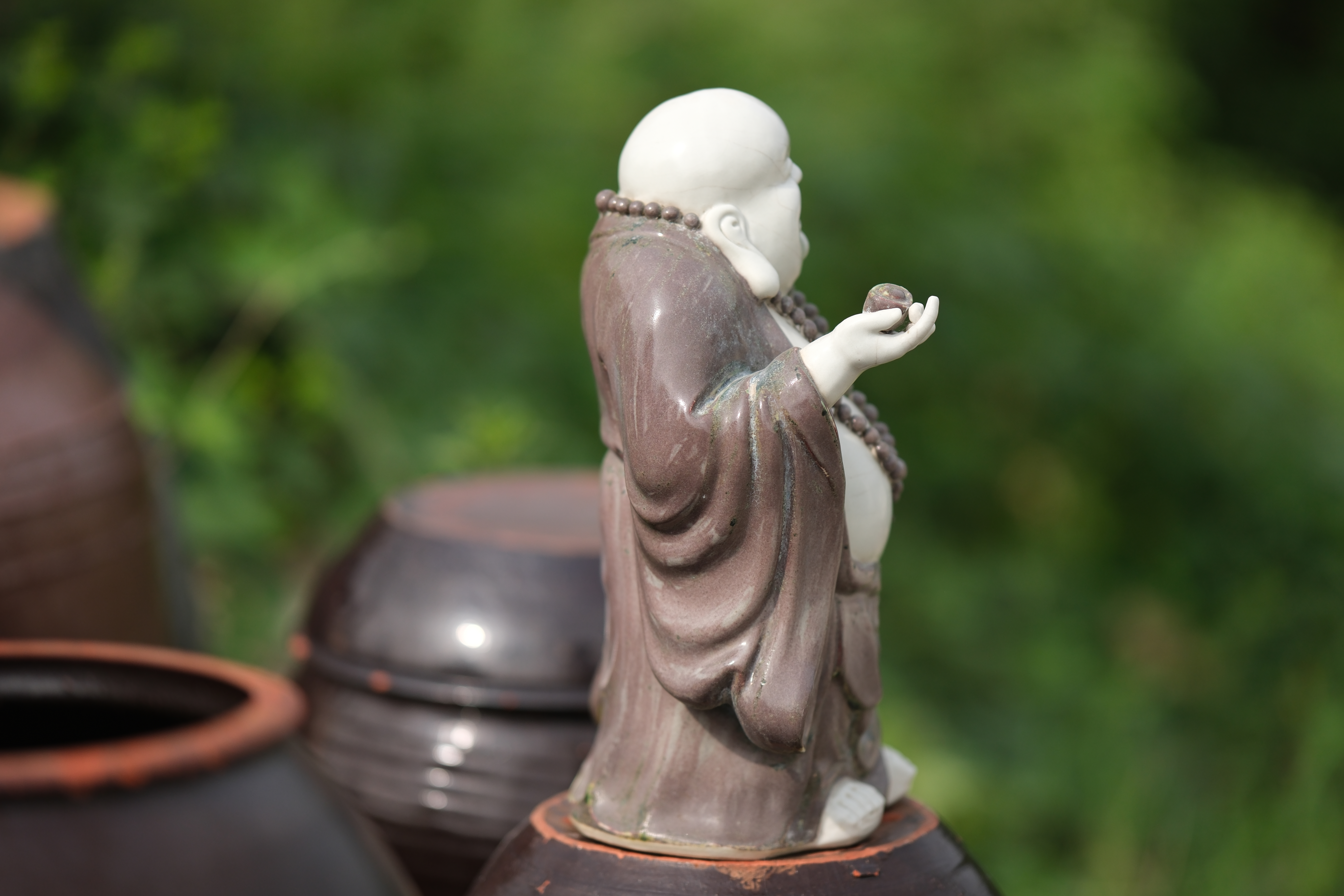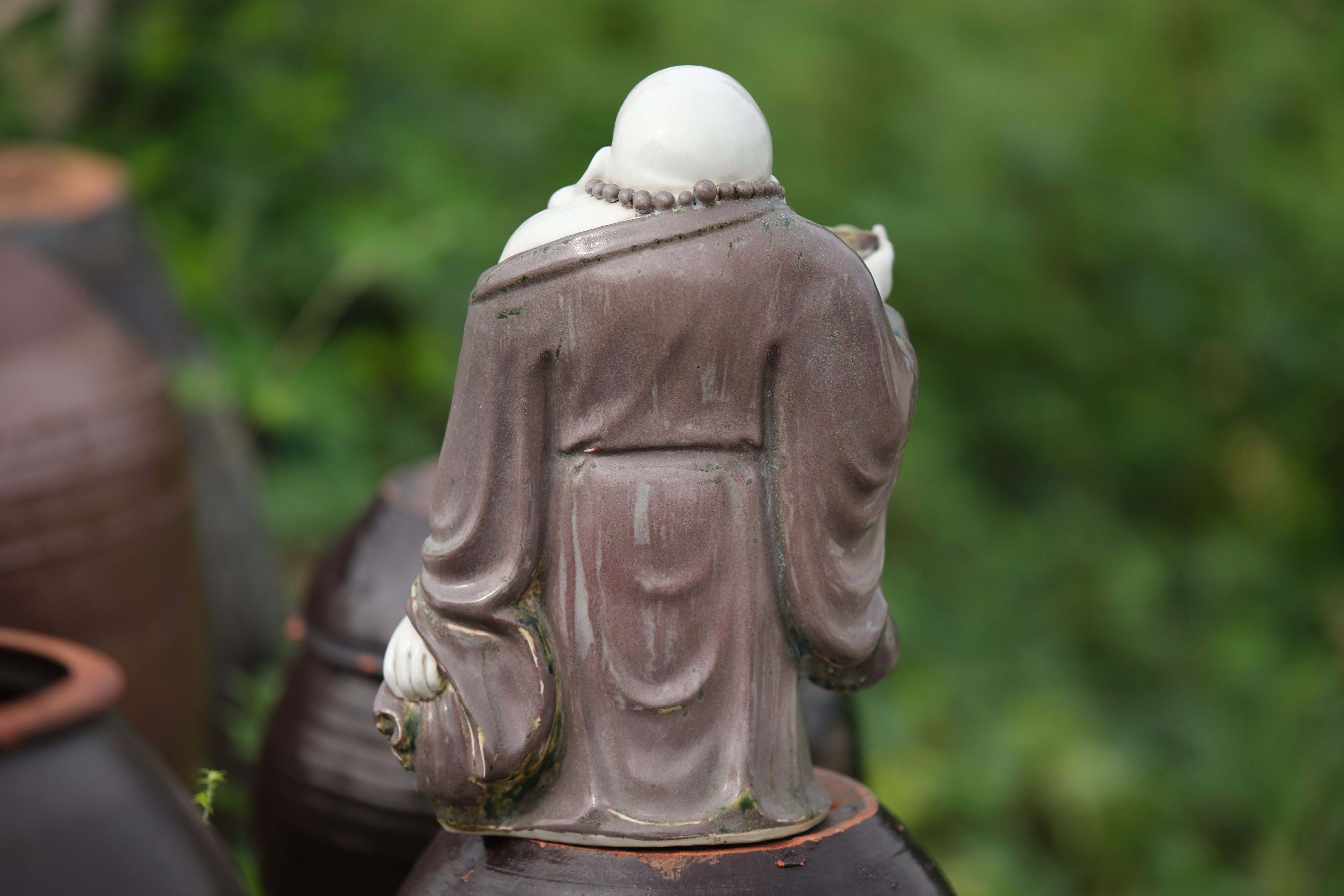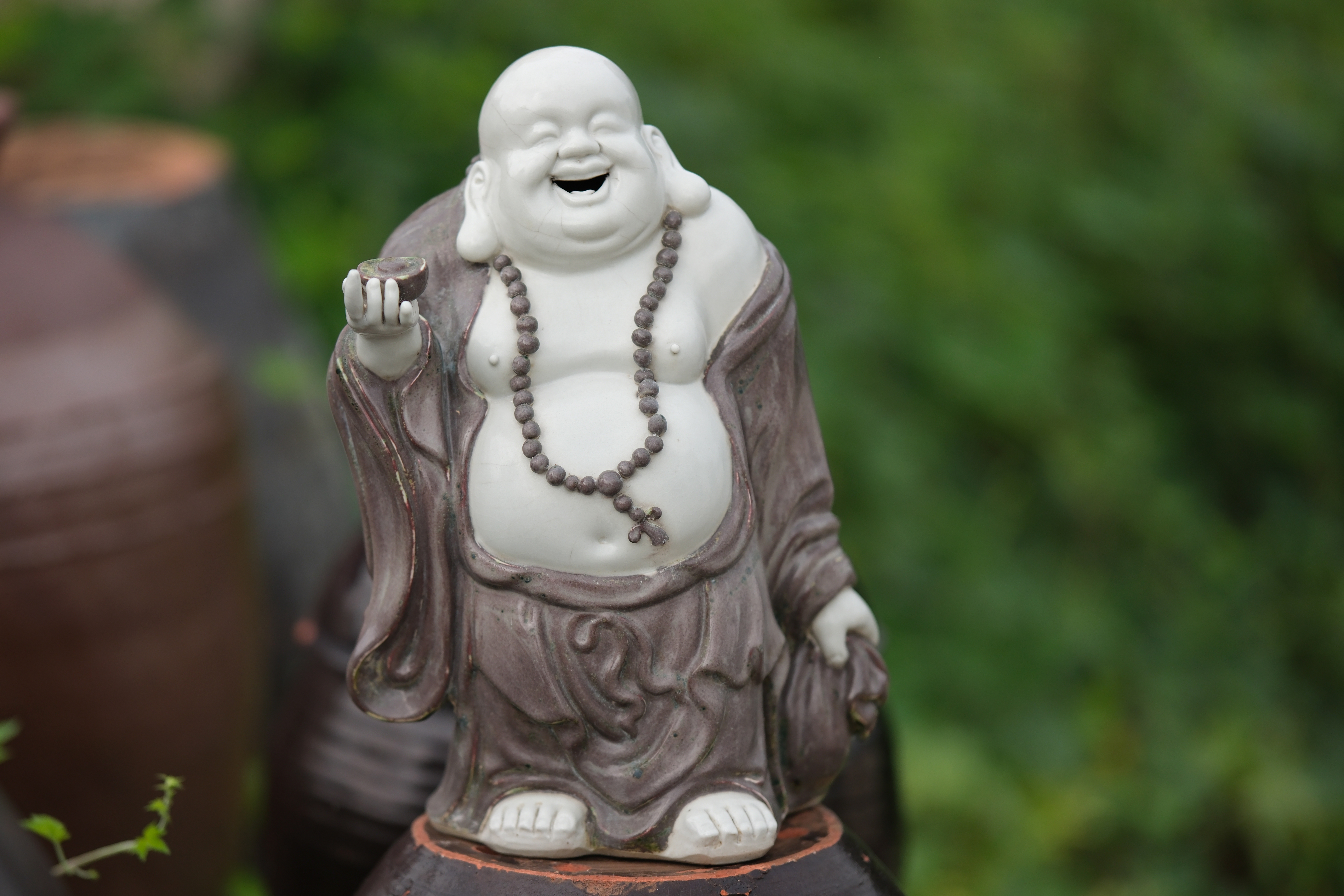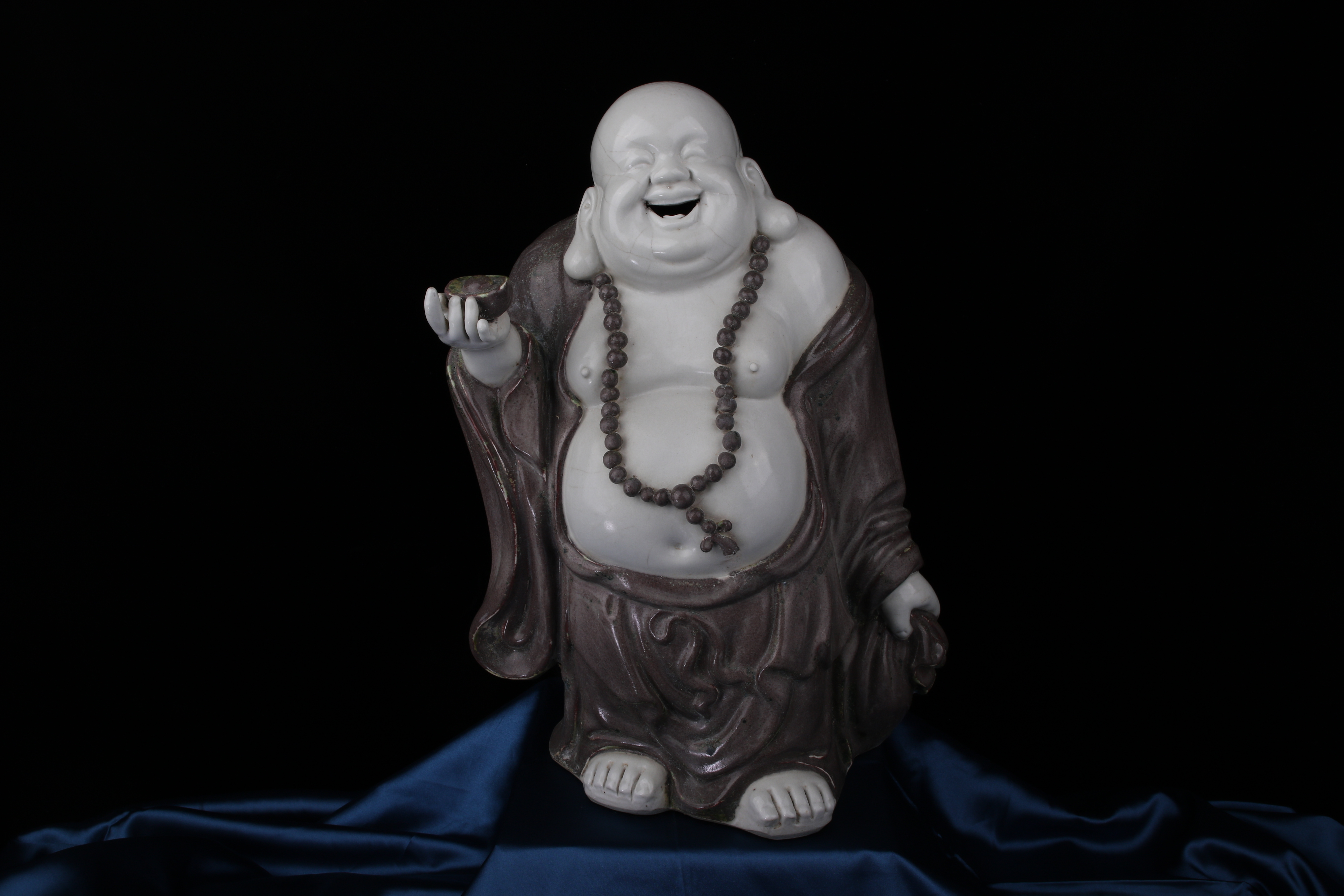 0458 An Underglaze Copper-Red Porcelain Figure of Budai “Condition issues”