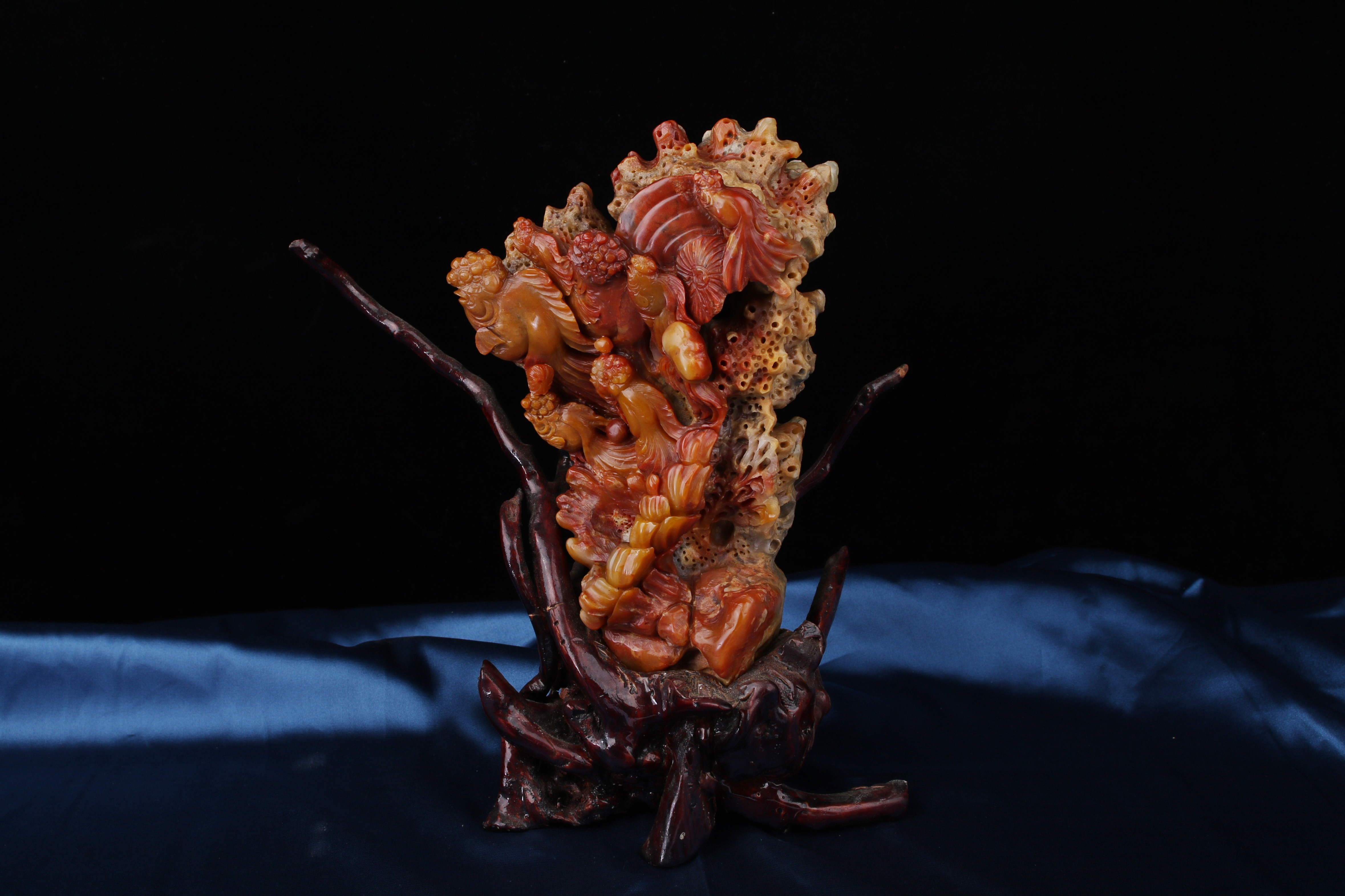 0498 Shoushan Furong Stone Carving – Goldfish Among Waves