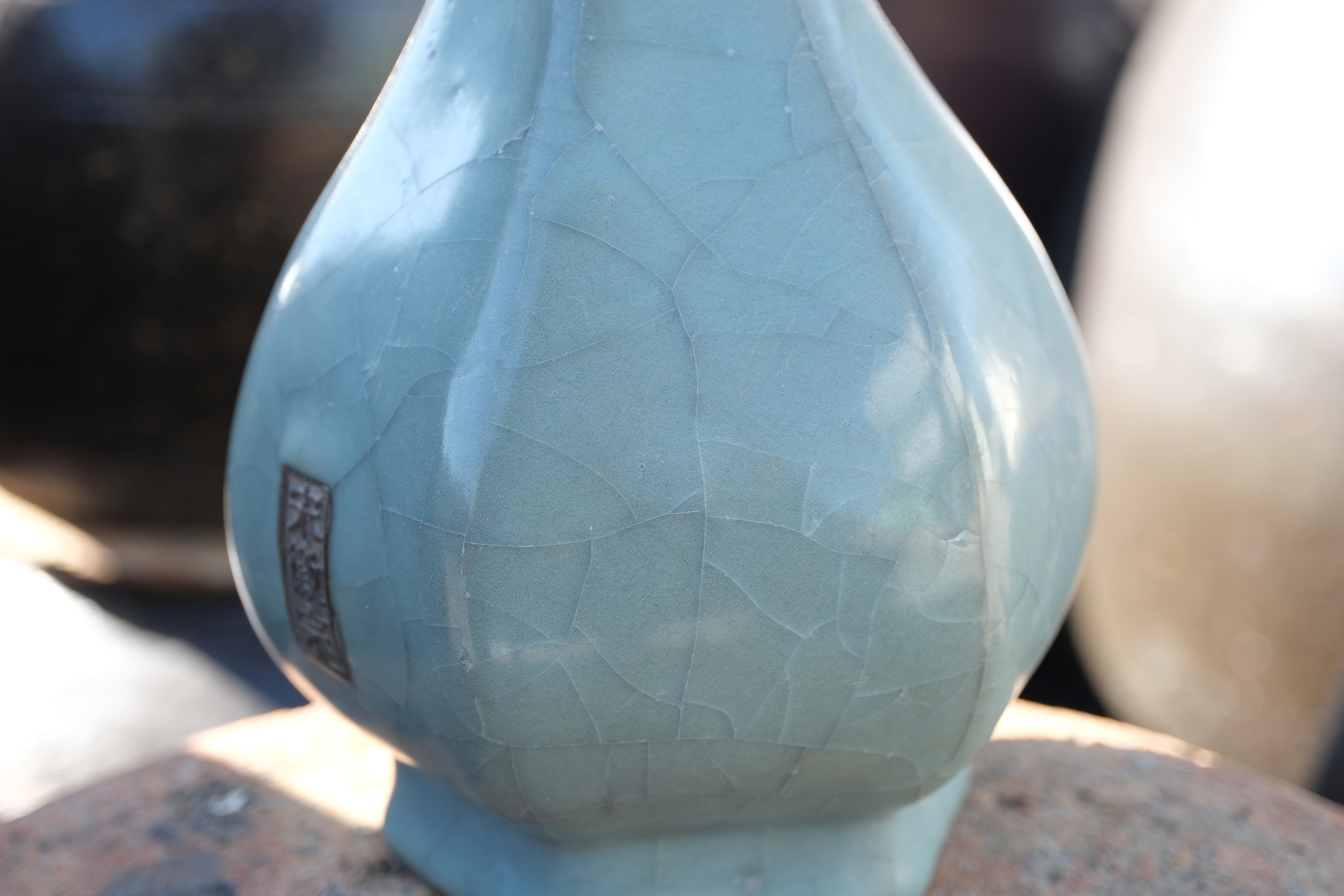 A0046. Guan-type Glazed Vase with Tubular Handles