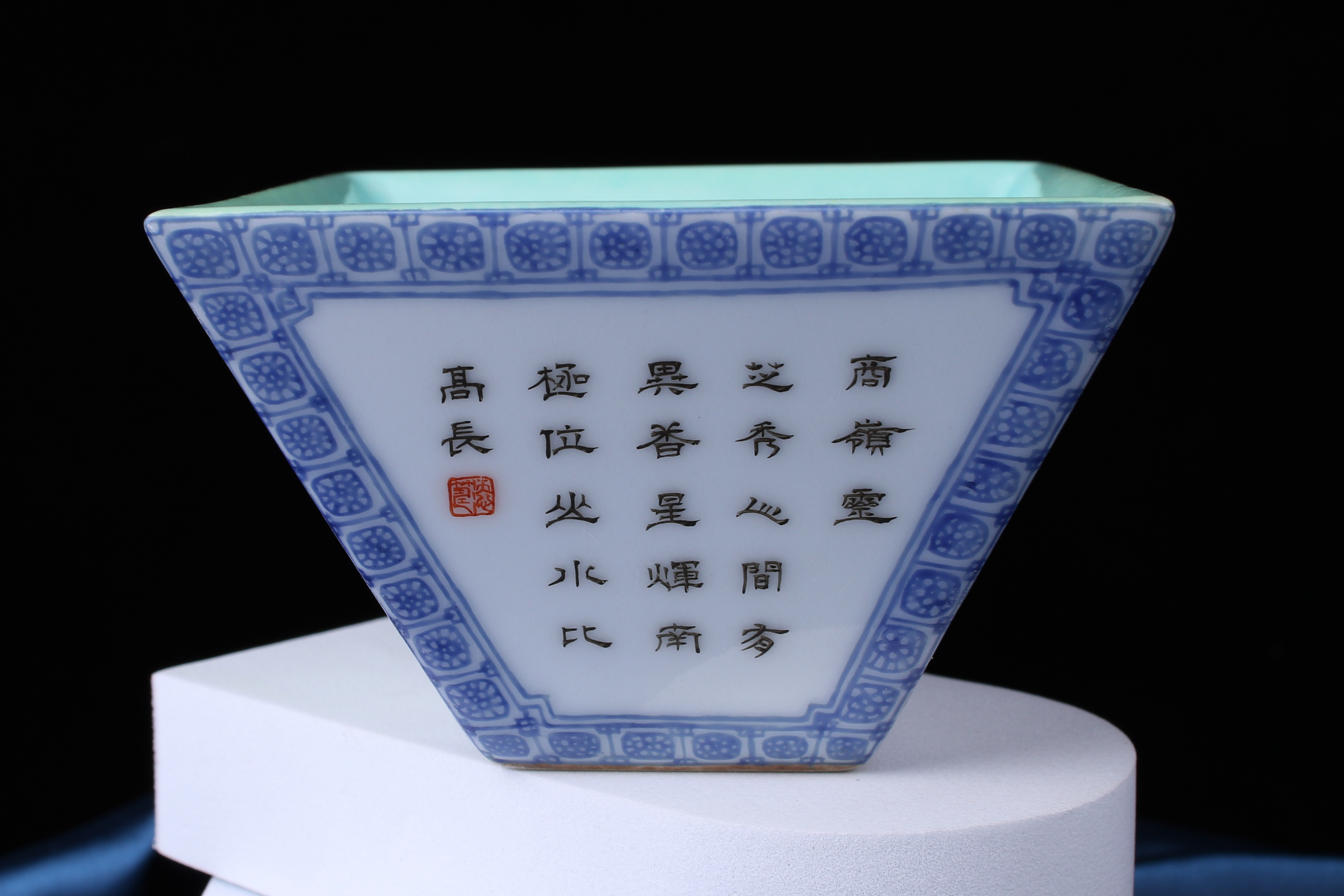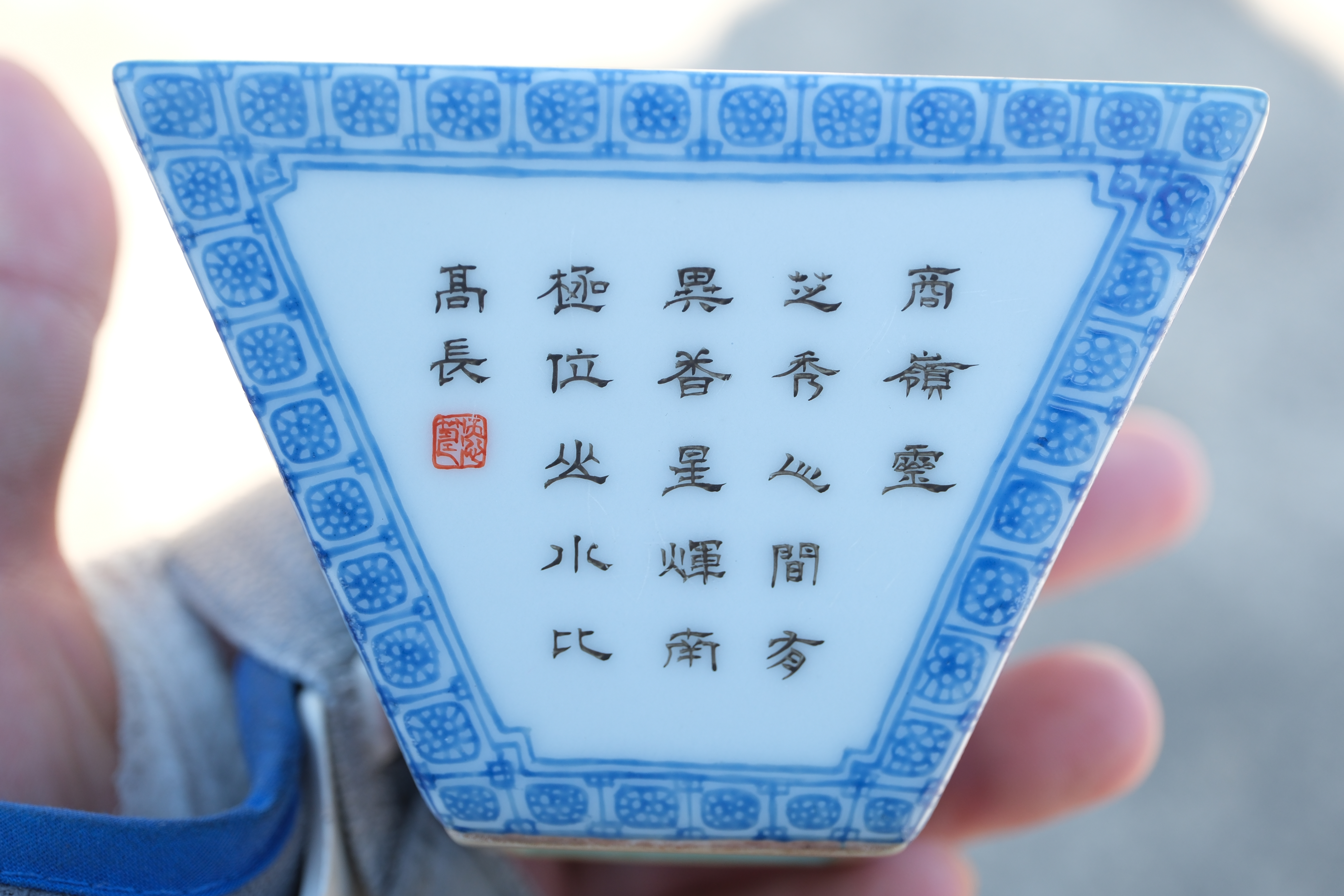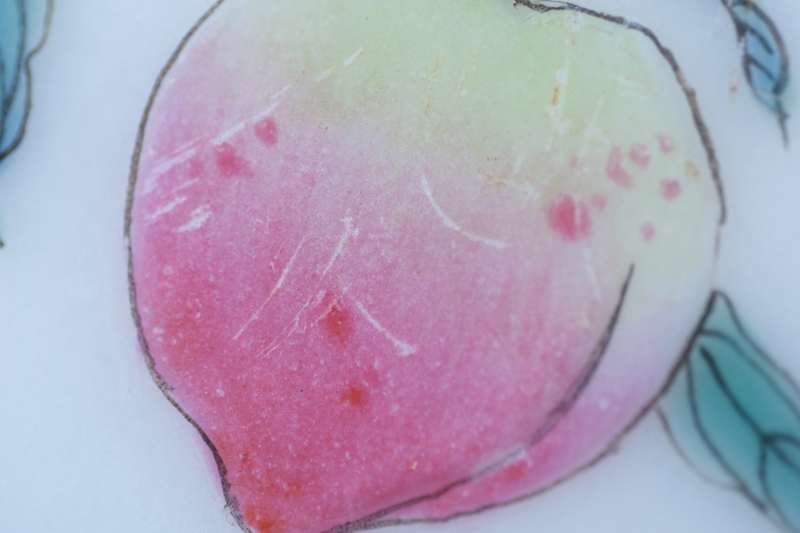 A0050. Famille Rose Square Bushel Cup with 'Auspicious Fruit' Peaches & Lingzhi