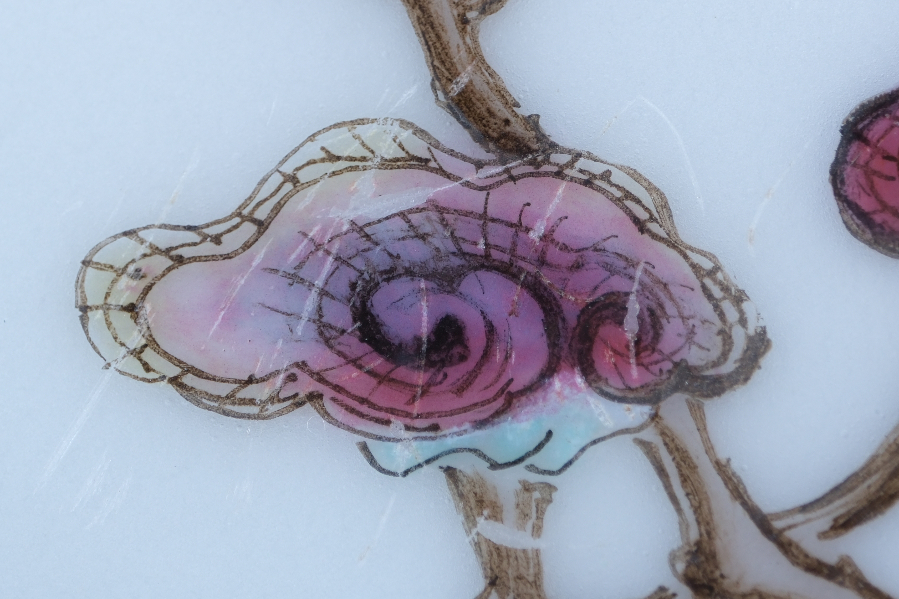 A0043. Daoguang Mark Famille Rose Dish with Geng Zhi Tu Picture of Farming