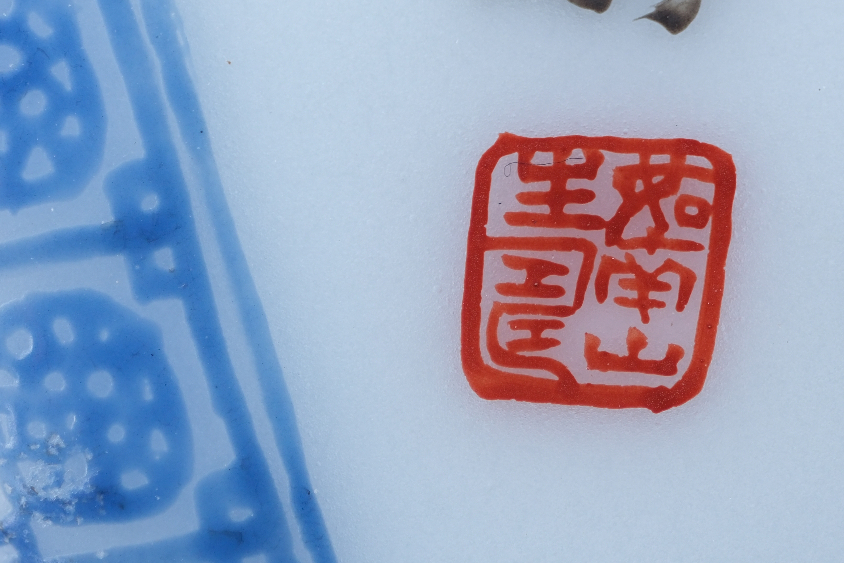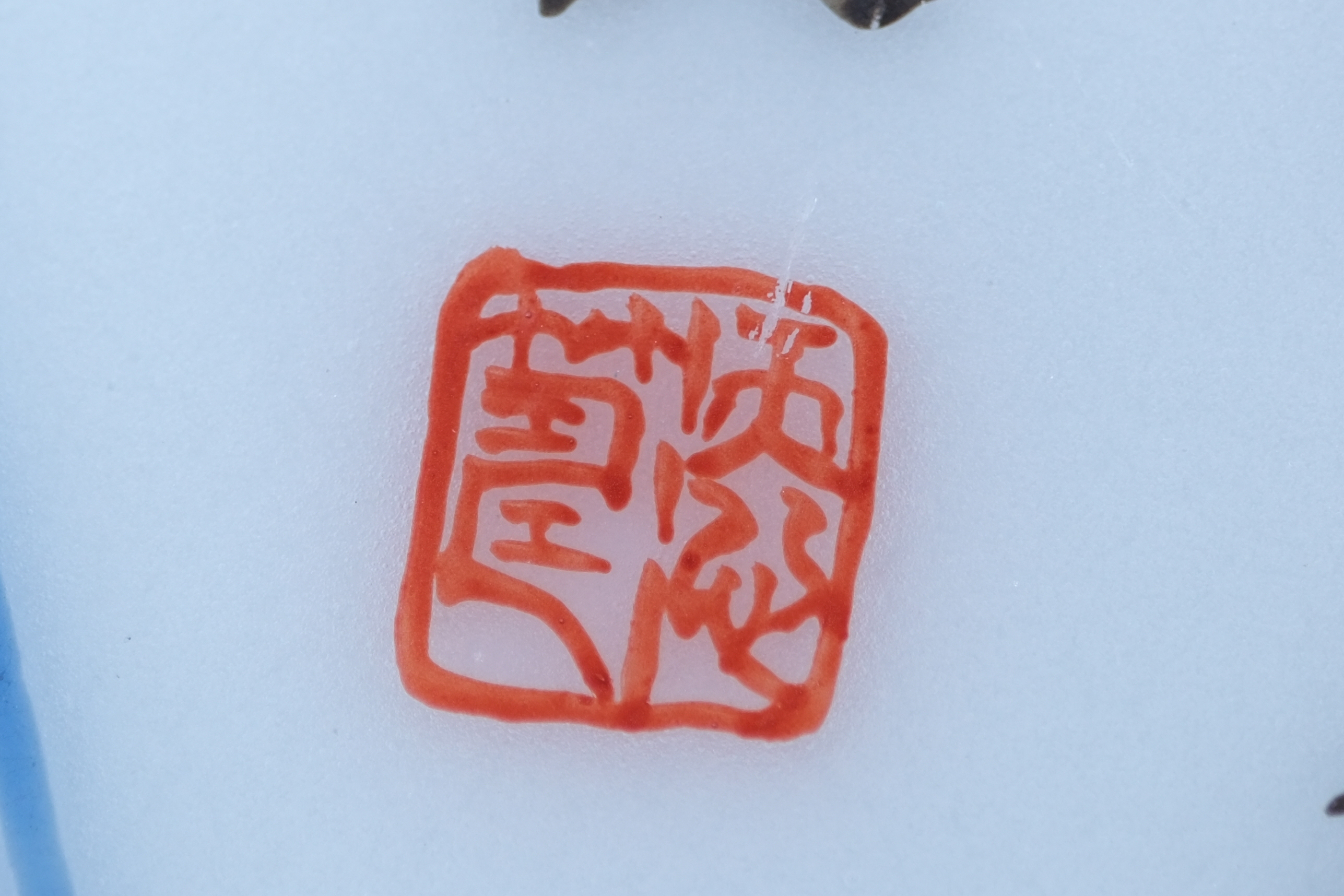 A0042. Blue and White with Overglaze Color Magpie & Plum Meiping Moon Flask