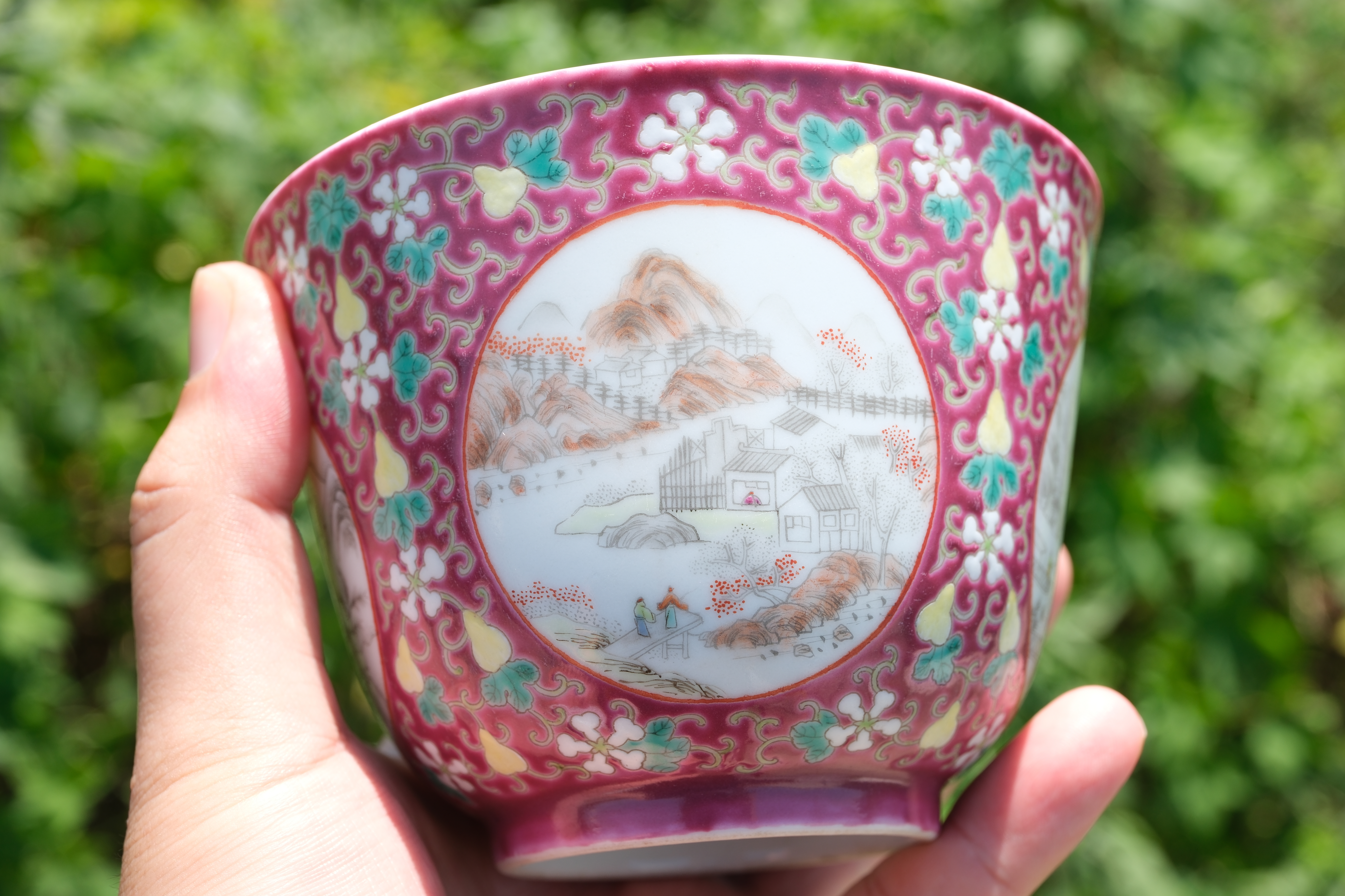 0197 A ruby-ground famille-rose figural bowl, Late Qing