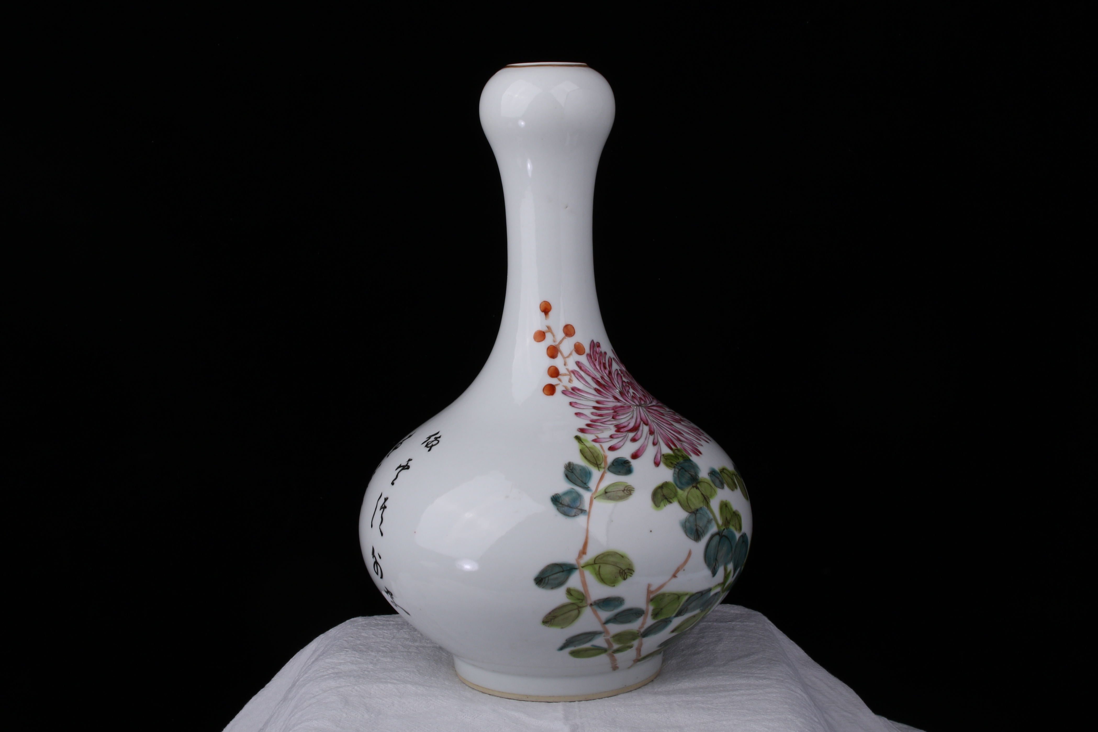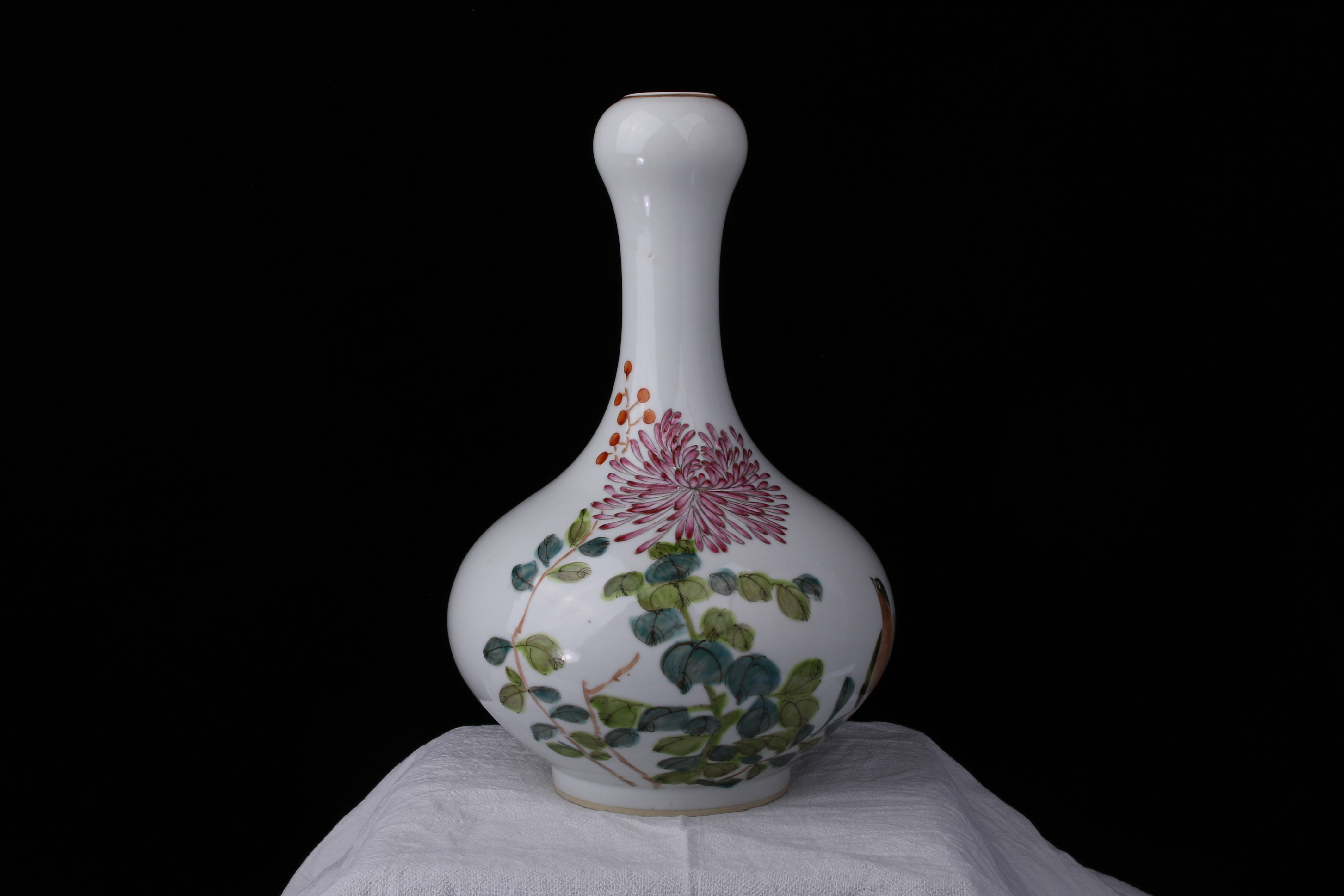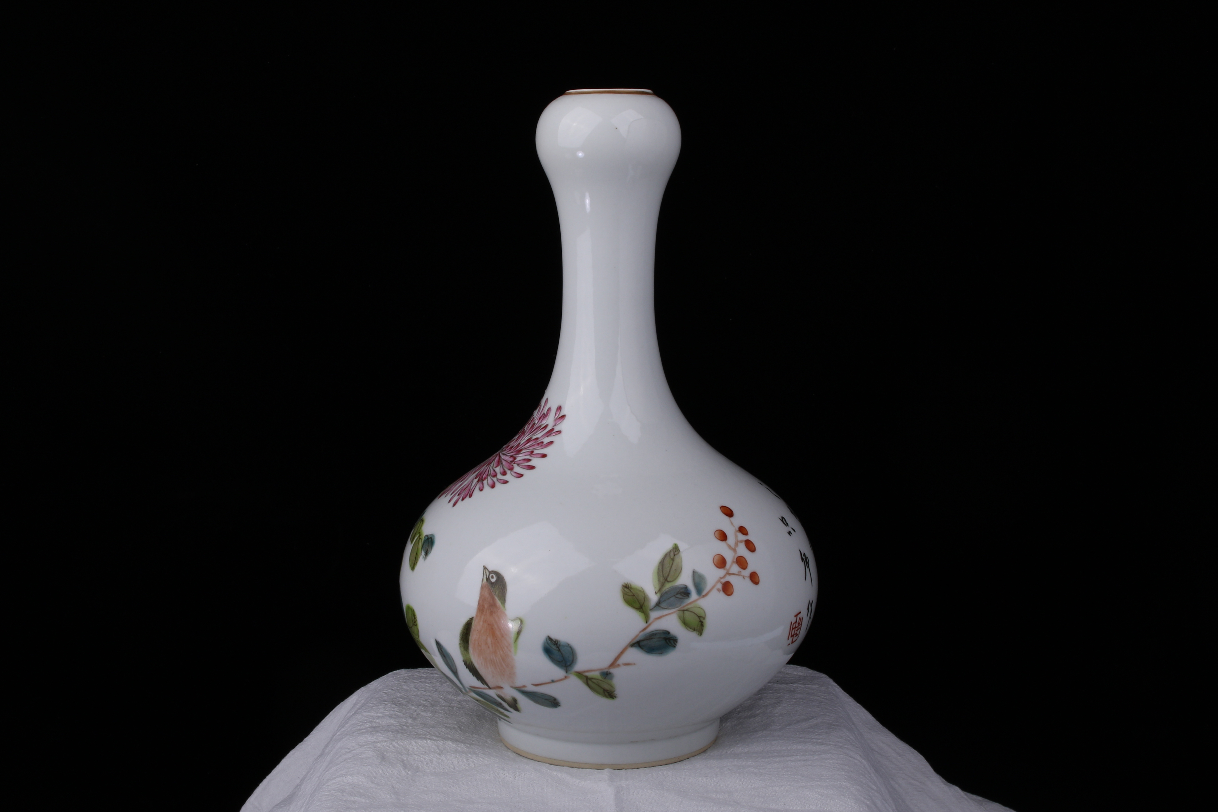 0368 GuāngxùNiánZào Seal Mark, Famille‑Rose ‘Bird&Flower’ Garlic‑Head Vase