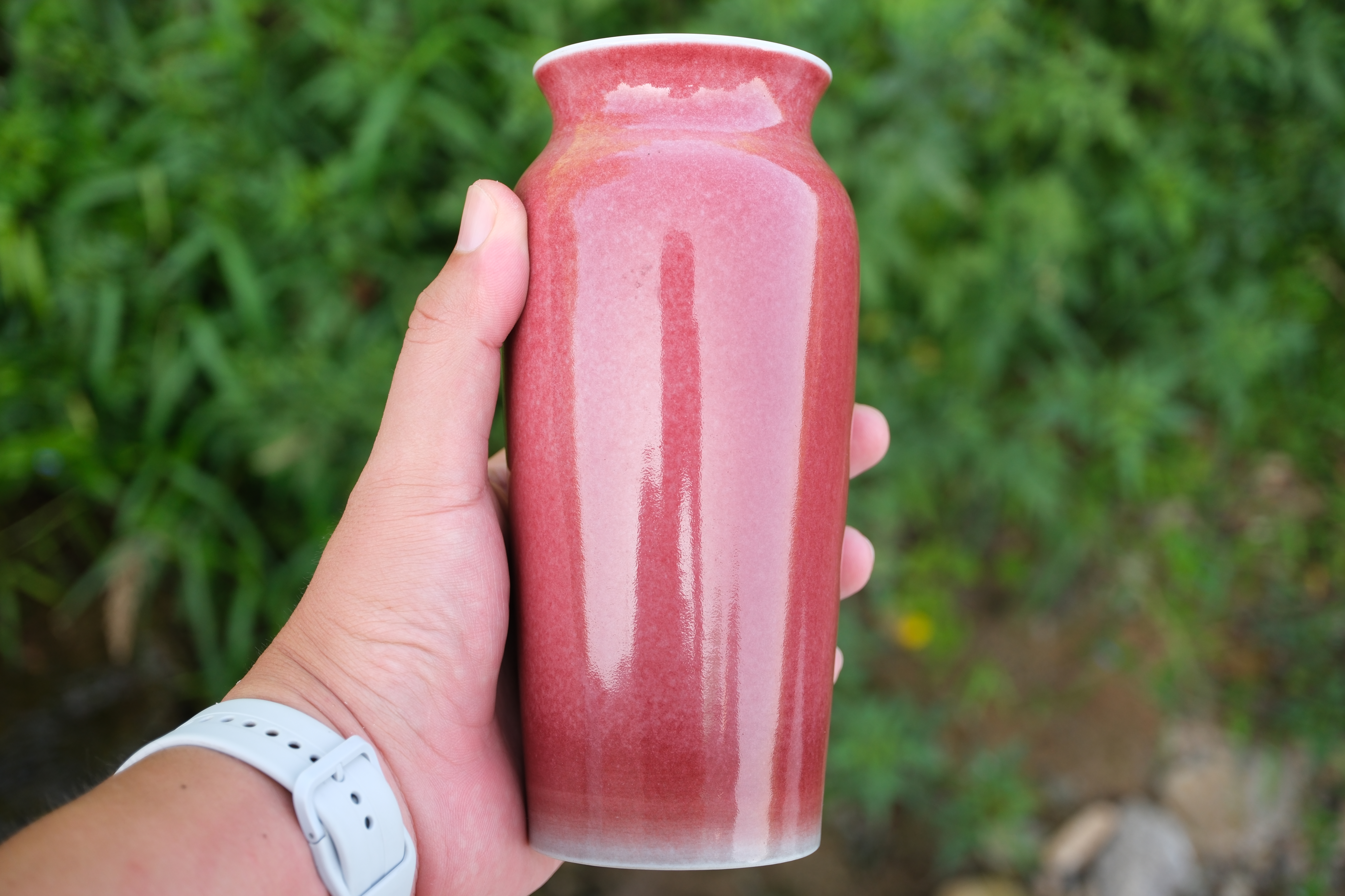 0390 Copper-Red Glazed Cylindrical Vase, Kangxi Mark