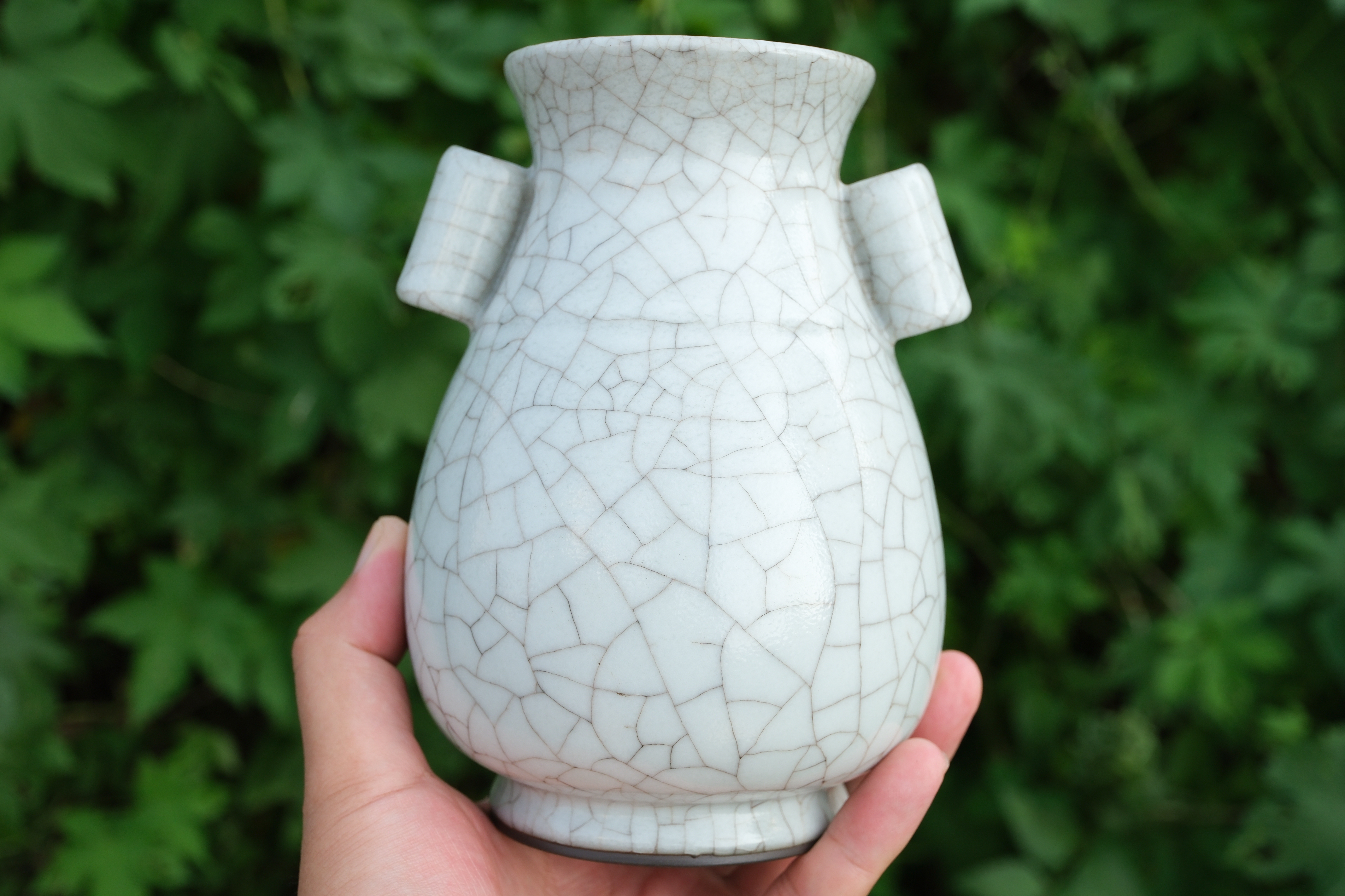 0397 Moon‑White Glazed Guan‑Type Tube‑Handled Vase-“Condition issues”