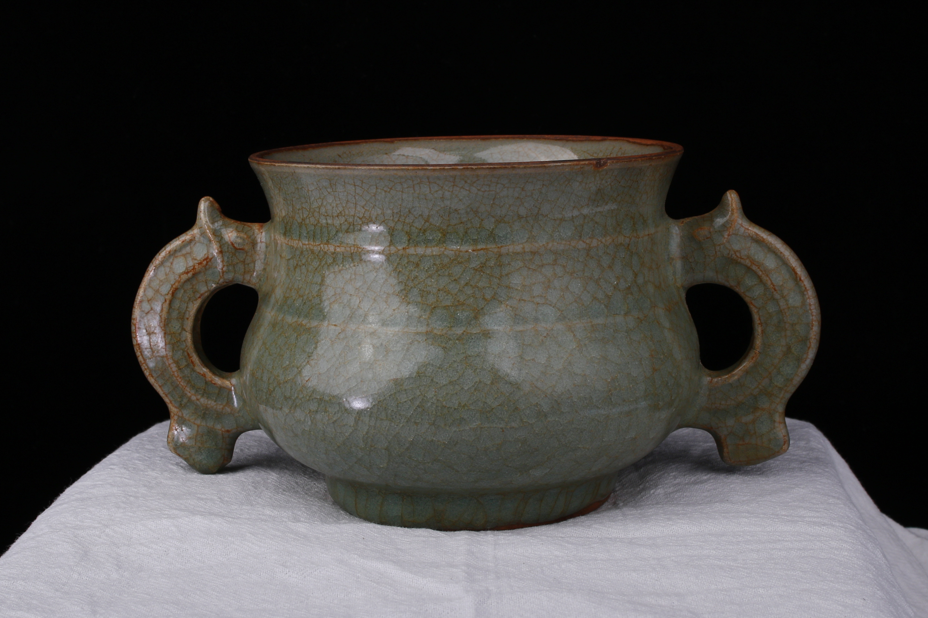 0399 Guan‑type Two‑Handled Incense Burner with Dragon‑Form Handles