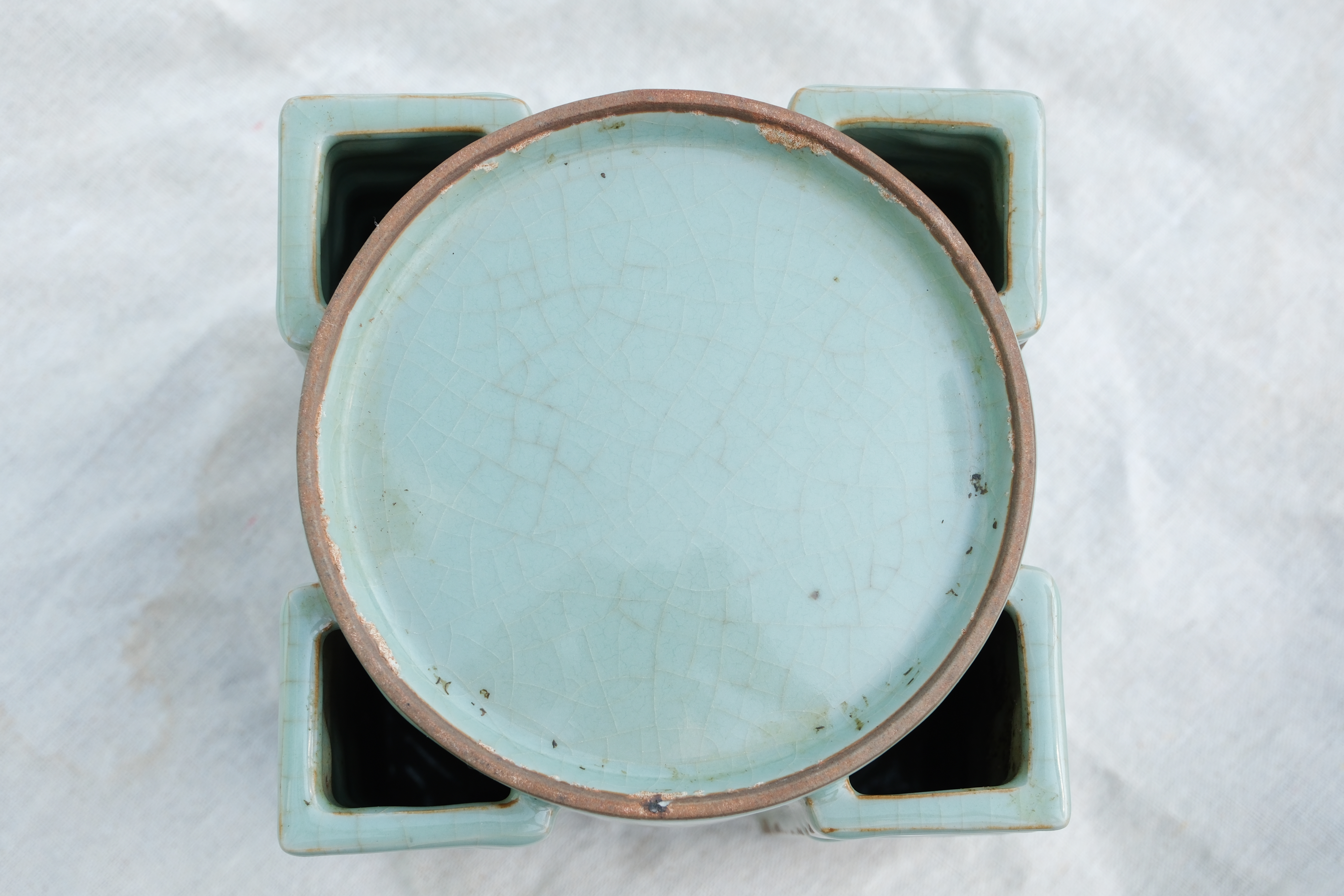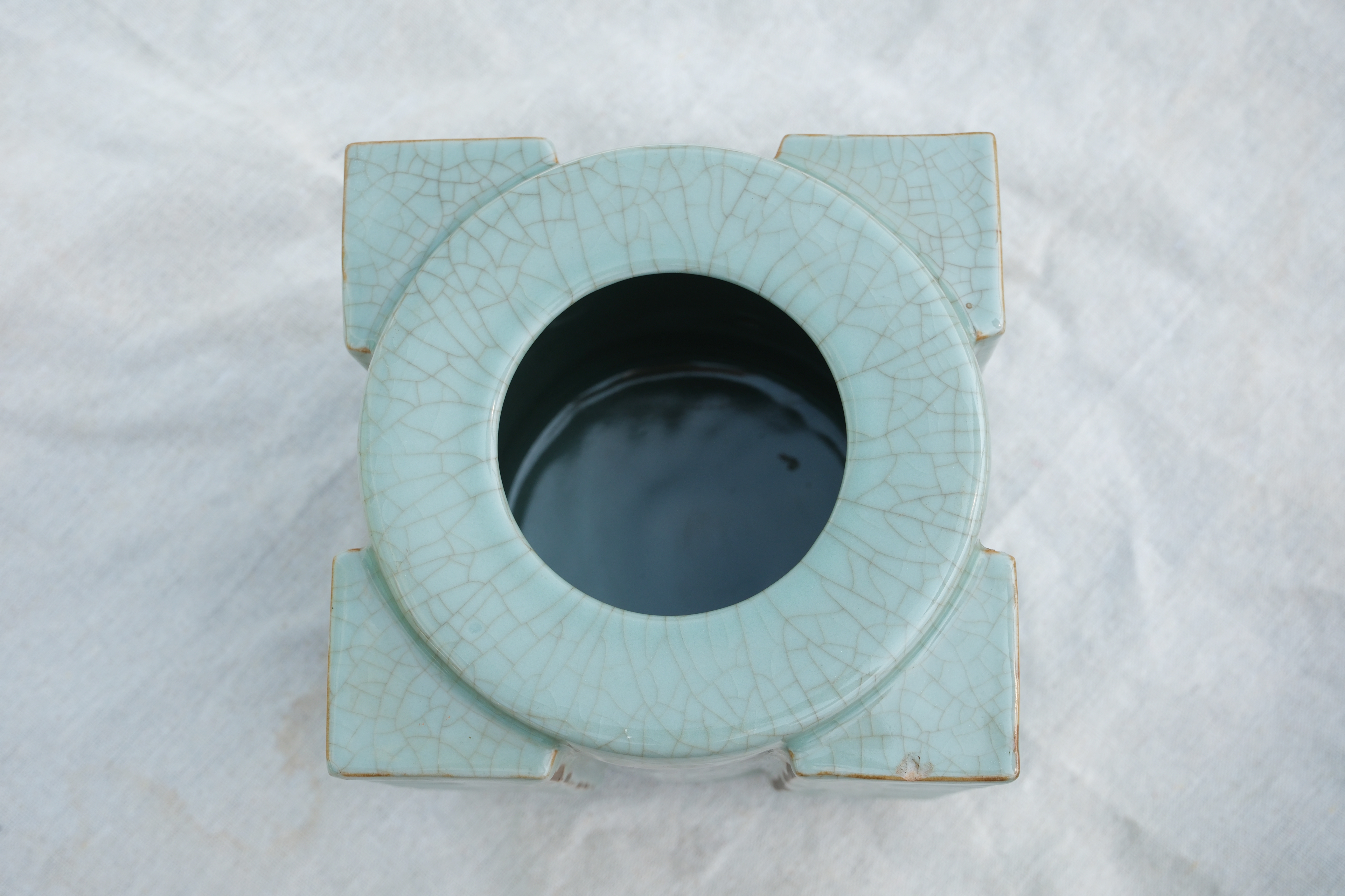0420 A Guan‑ware Celadon‑Glazed Cong Vase “Condition issues”