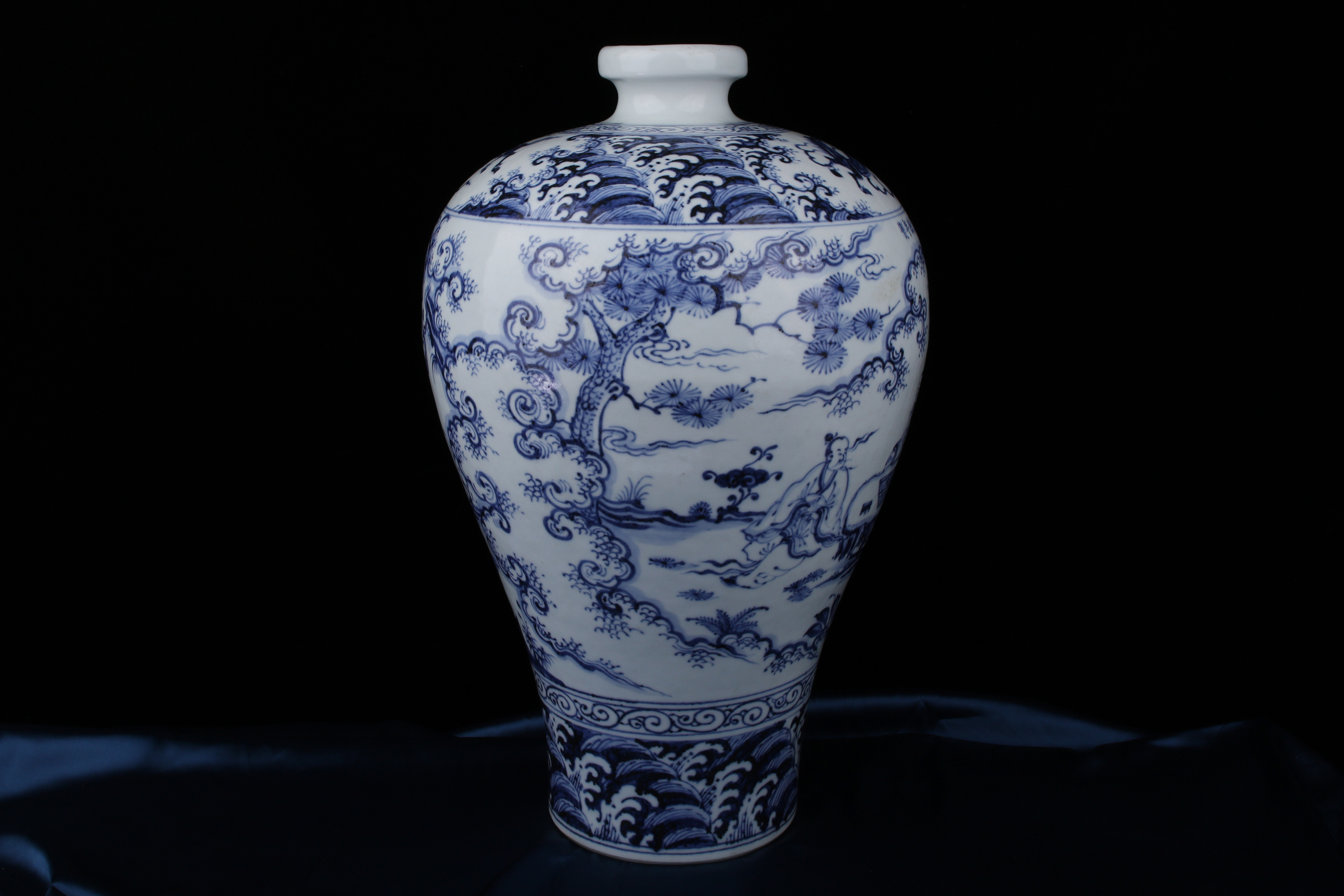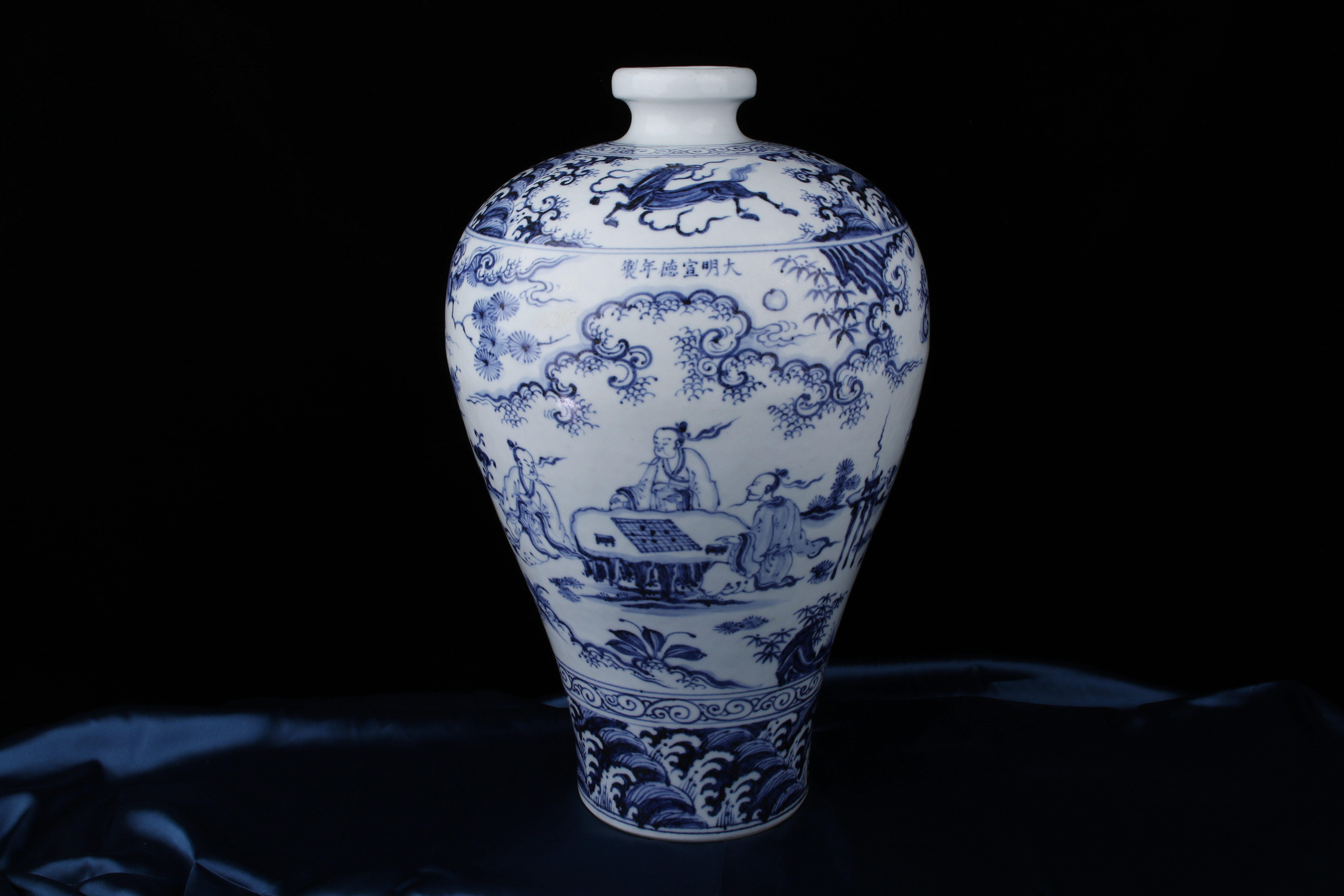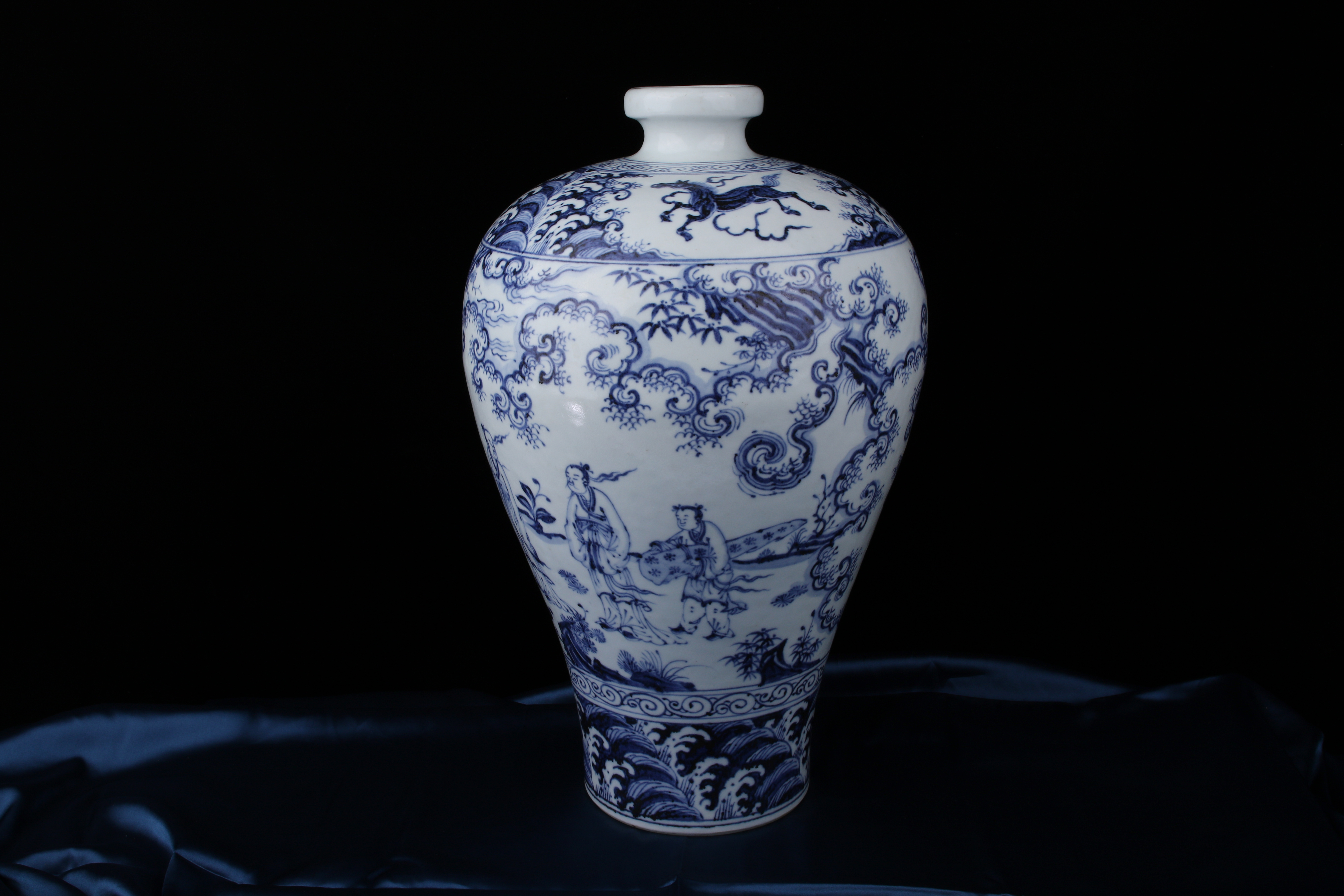 0481 Blue-and-White Meiping Vase with Xie Qin Fang You” Motif (攜琴訪友)