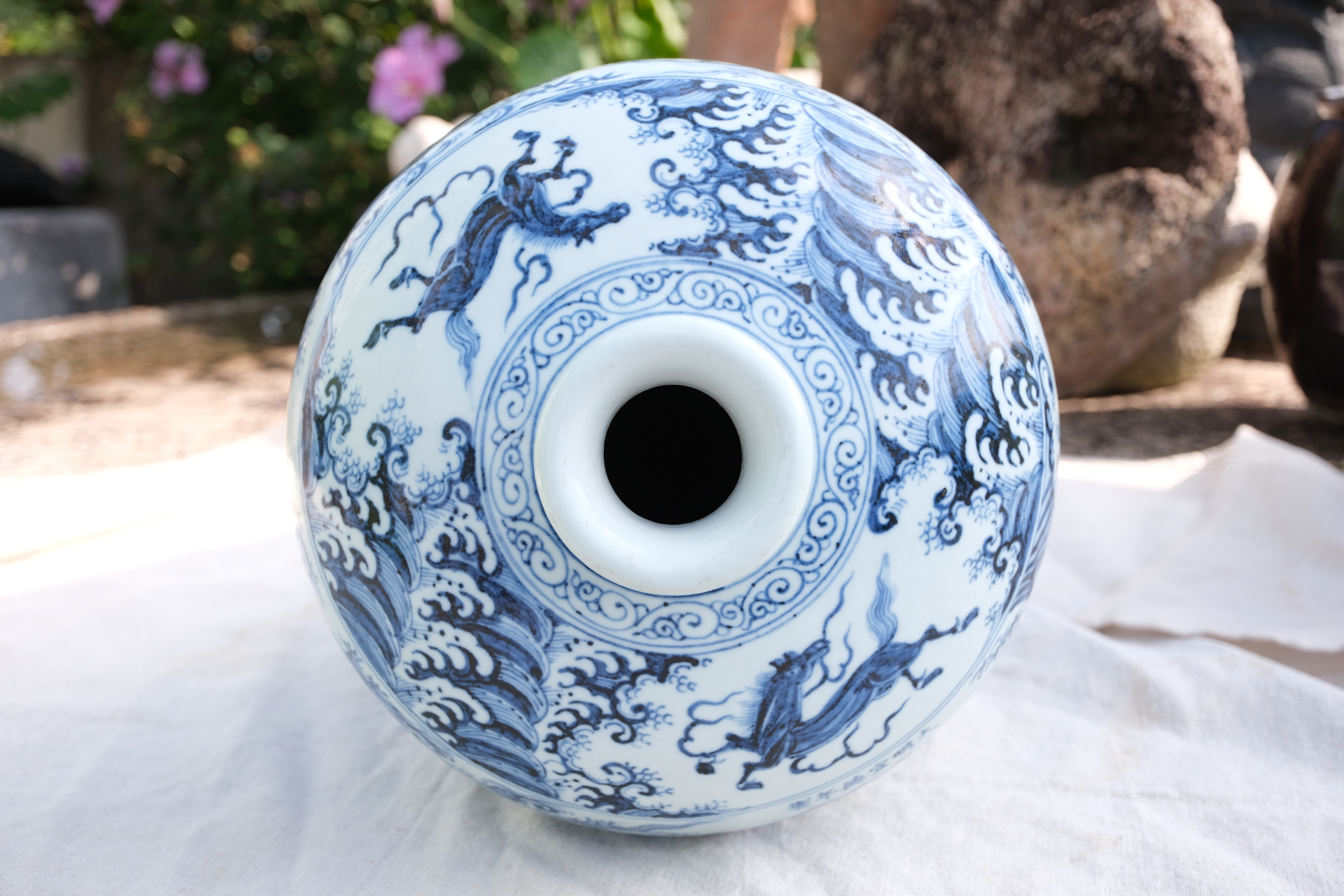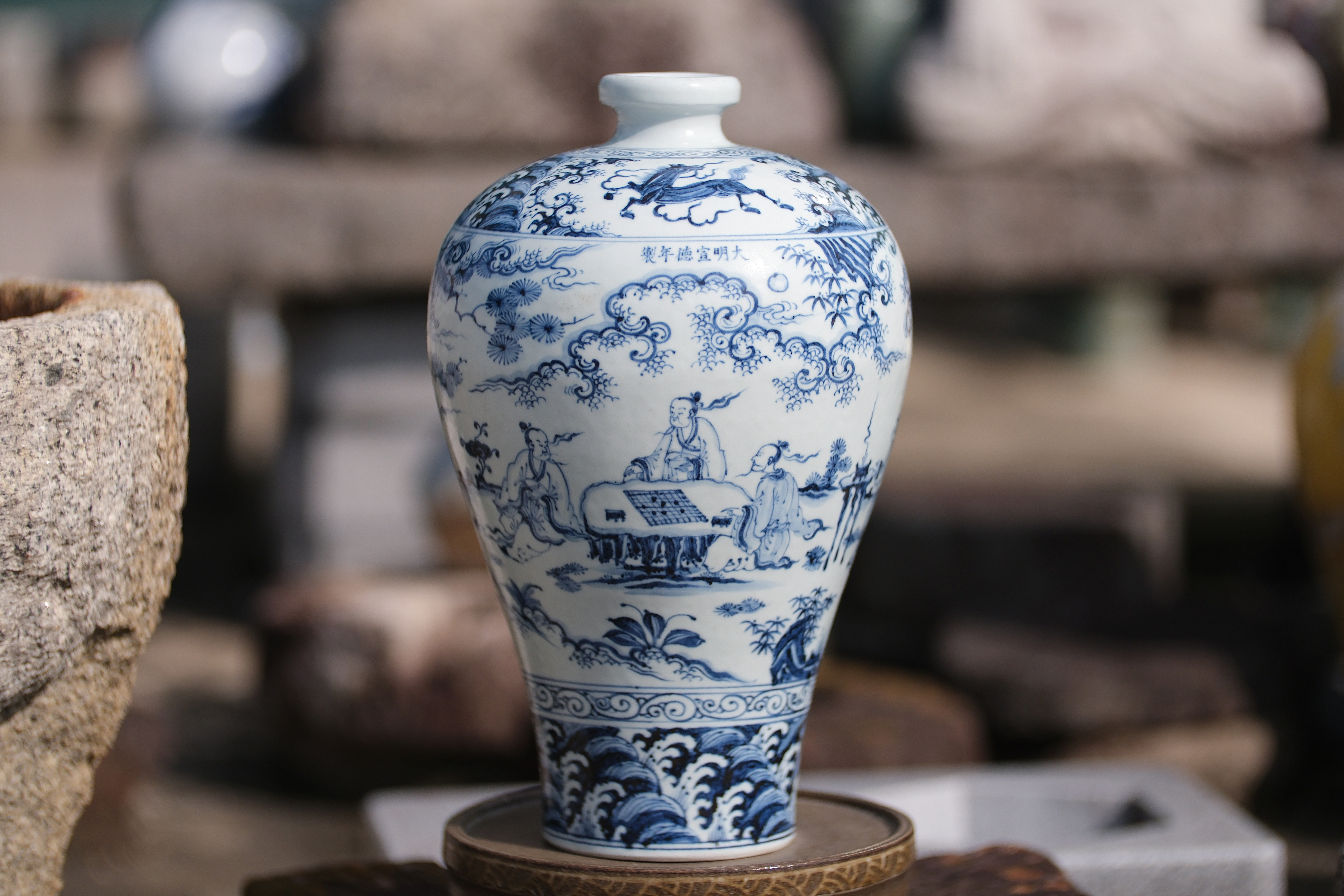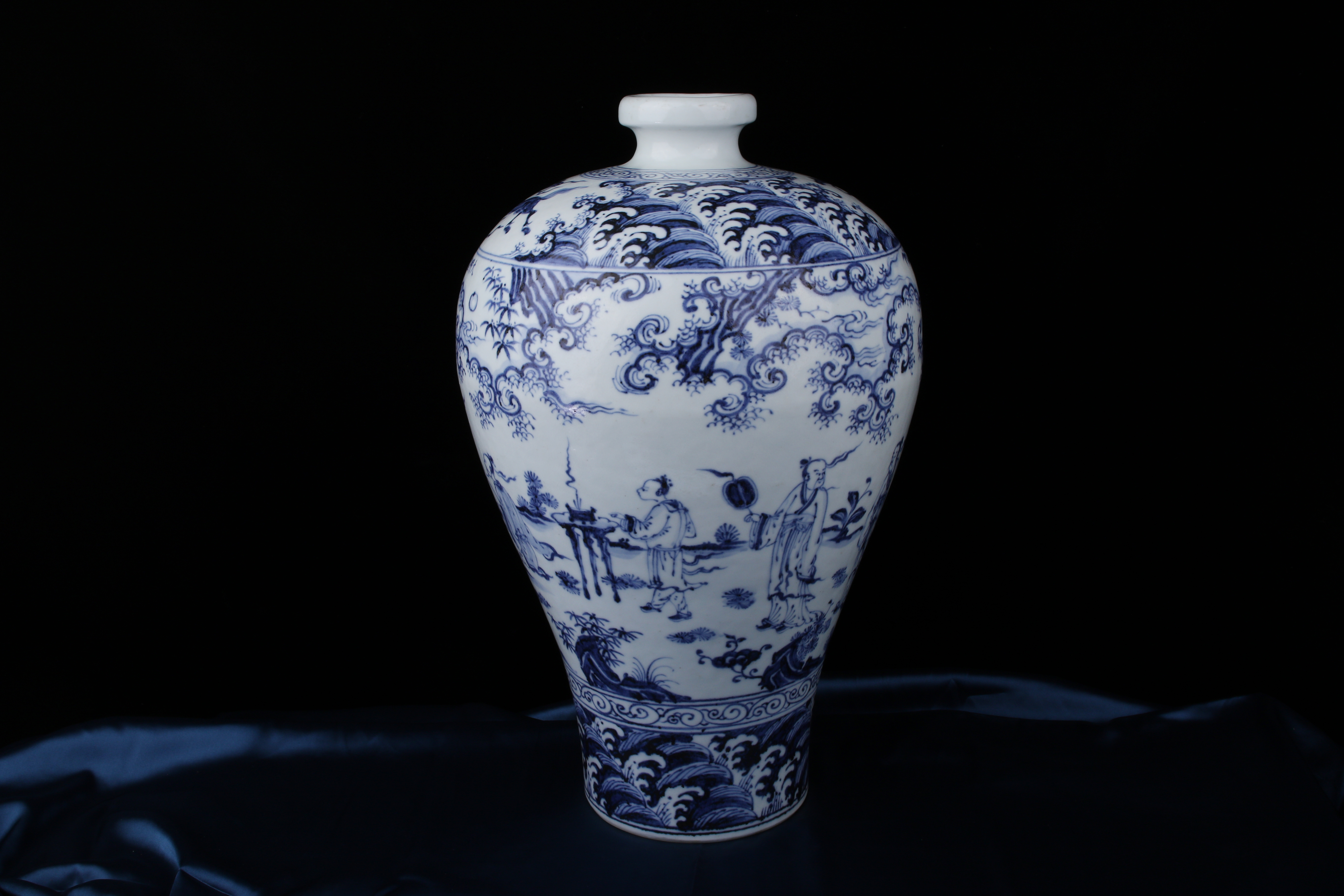 0481 Blue-and-White Meiping Vase with Xie Qin Fang You” Motif (攜琴訪友)