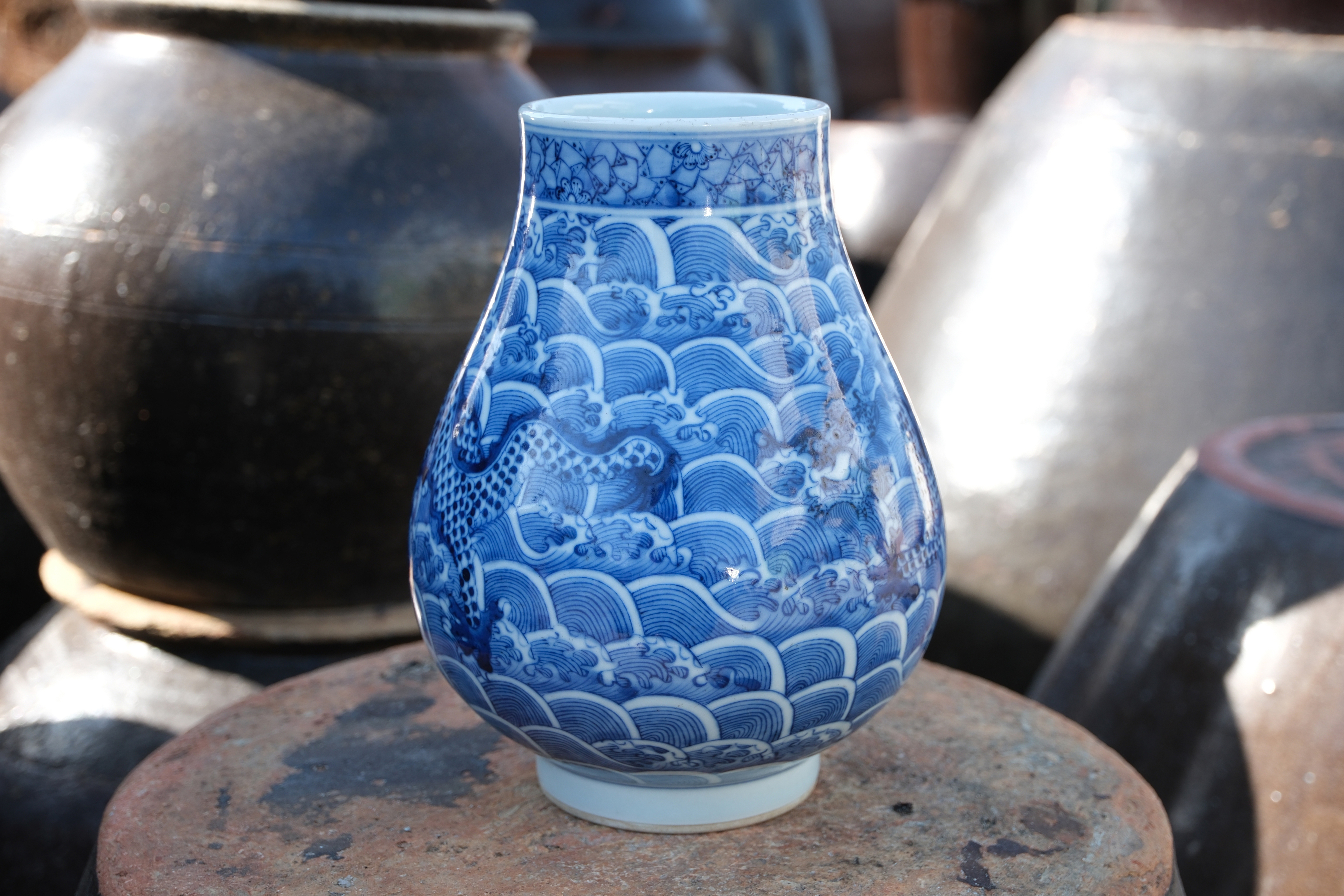 A0010. Marked Kangxi, Blue and White Sea Dragon Vase