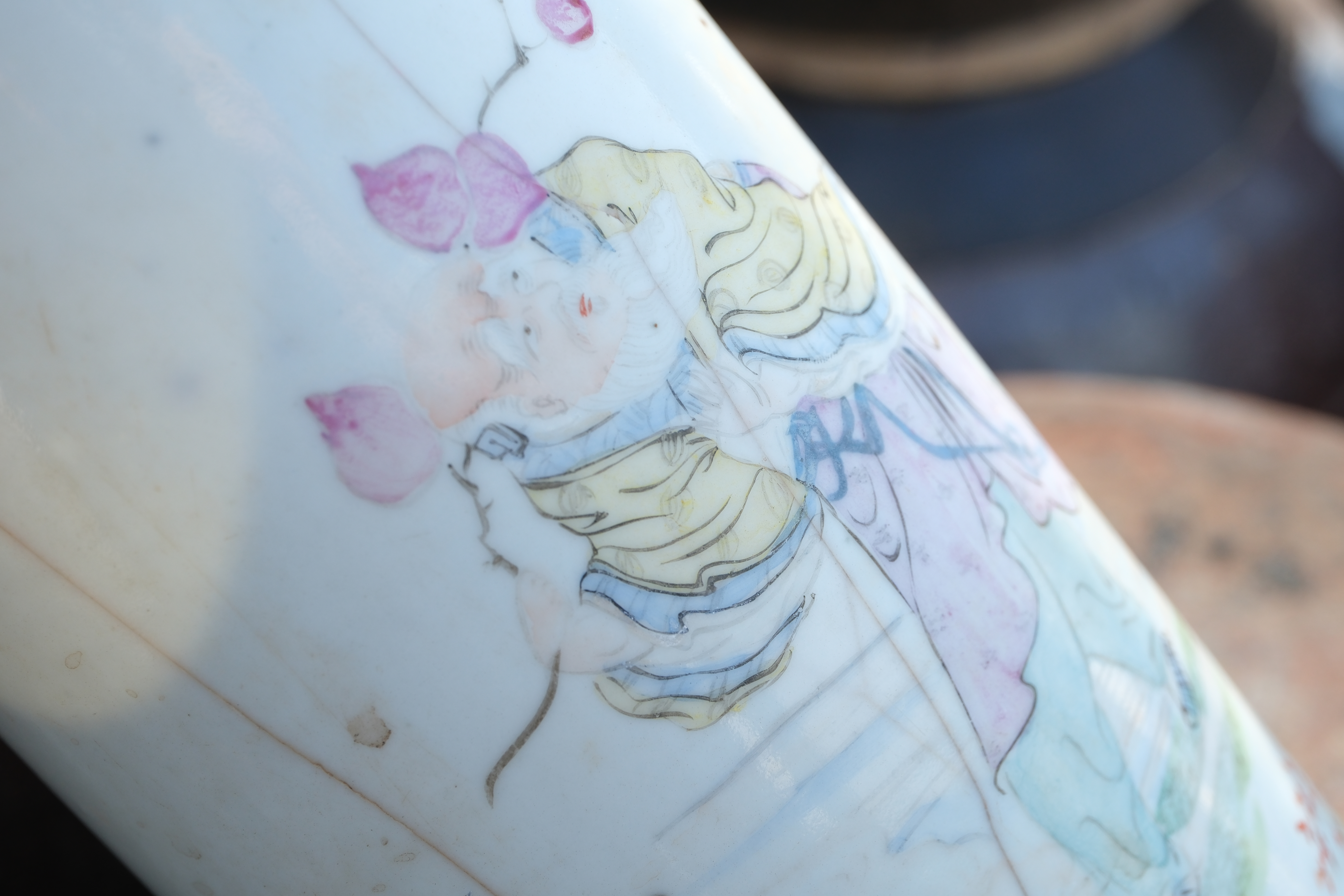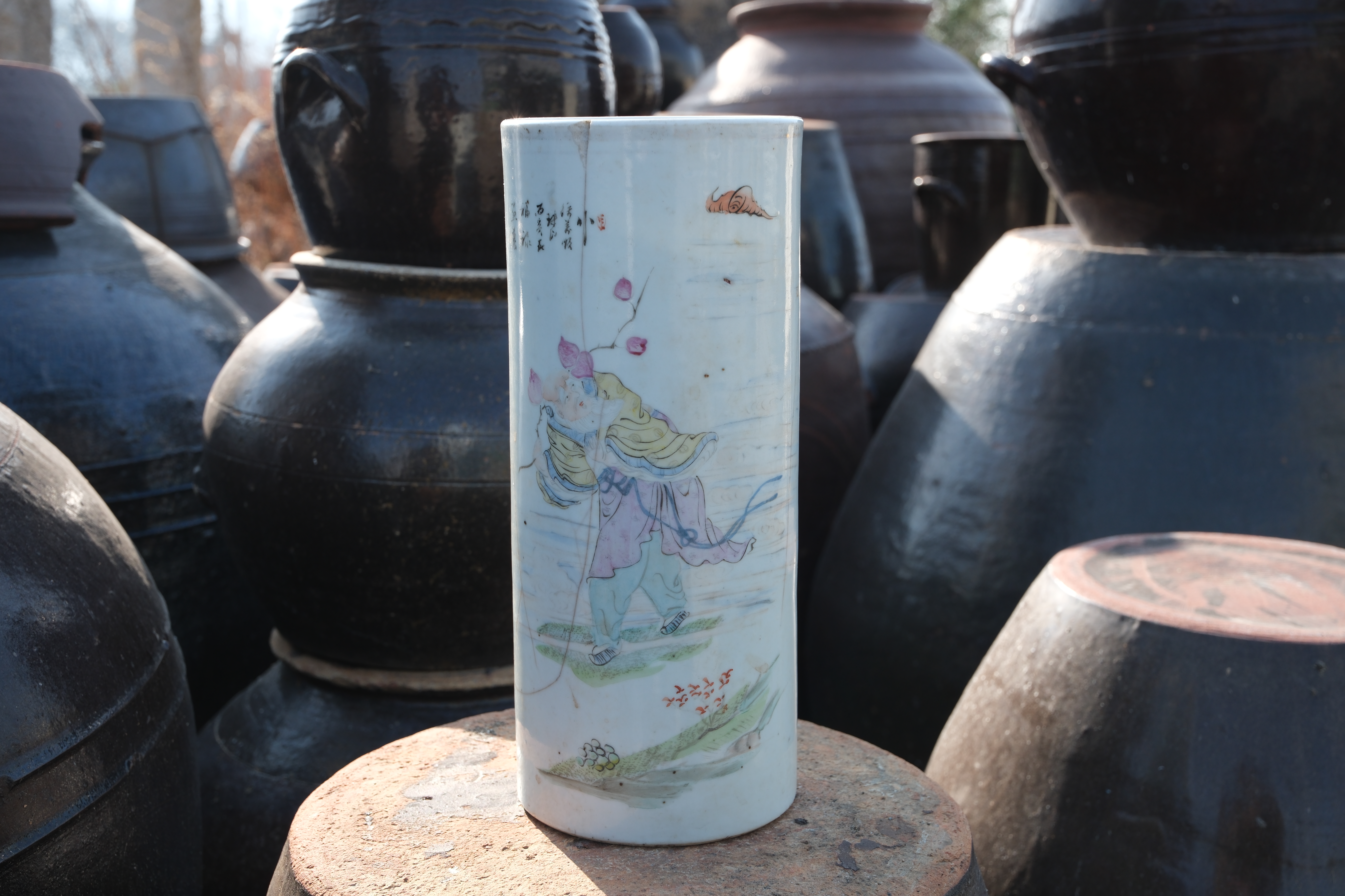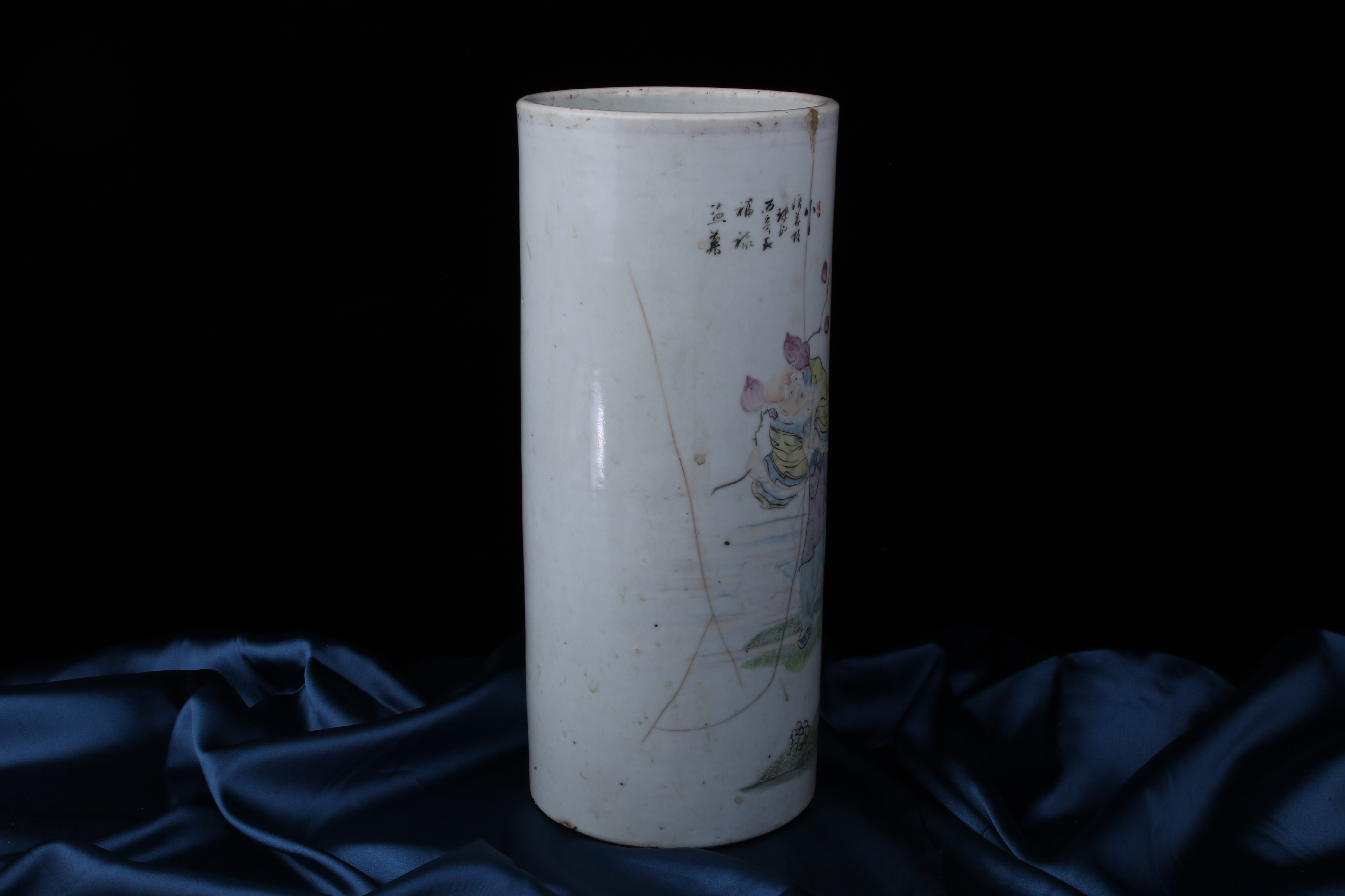 A0024. Signed Master Xu Wan-shun Famille Rose Brush Pot - Condition Issues