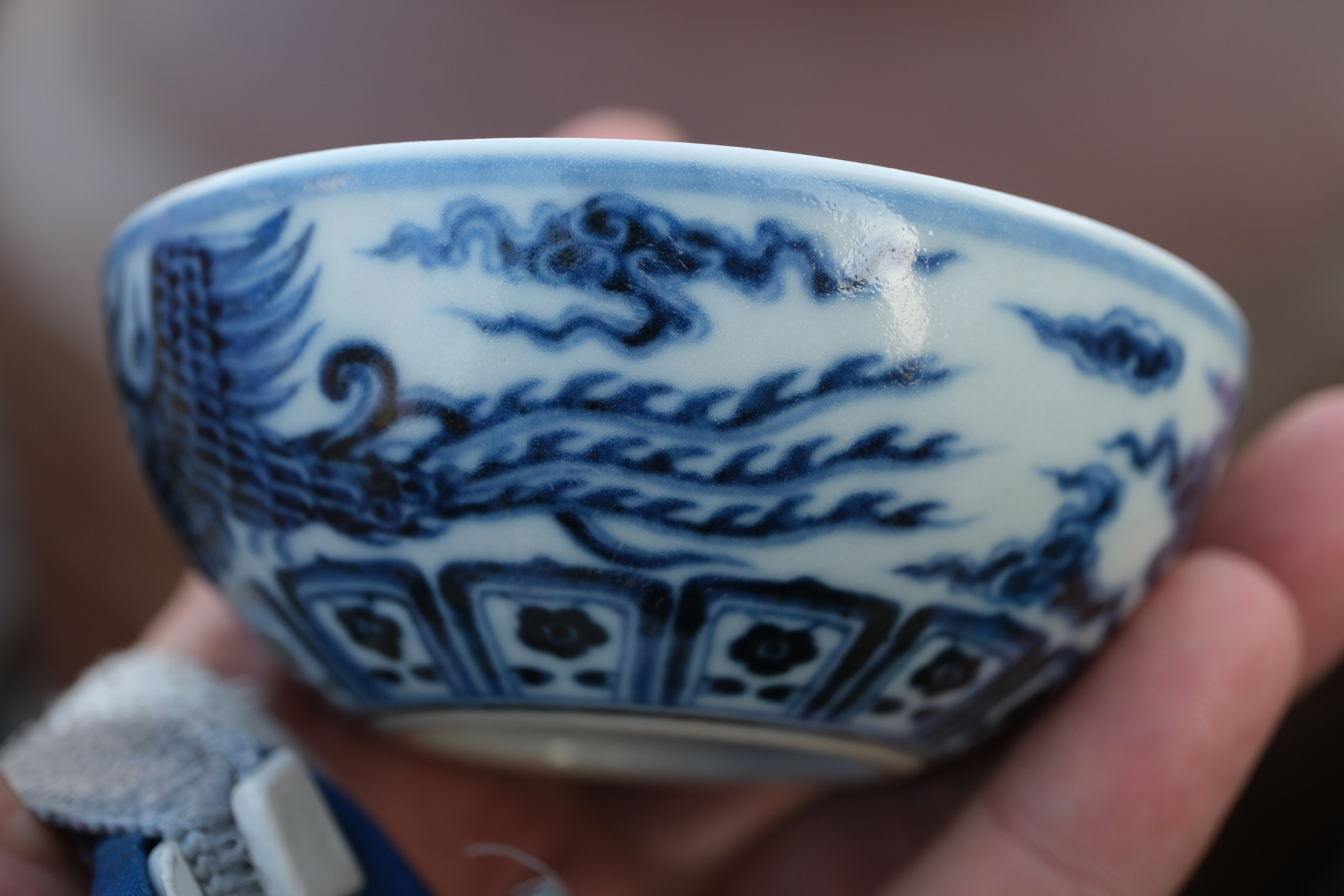 A0025. Blue and White 'Cloud and Phoenix' Cup, Xuande Mark