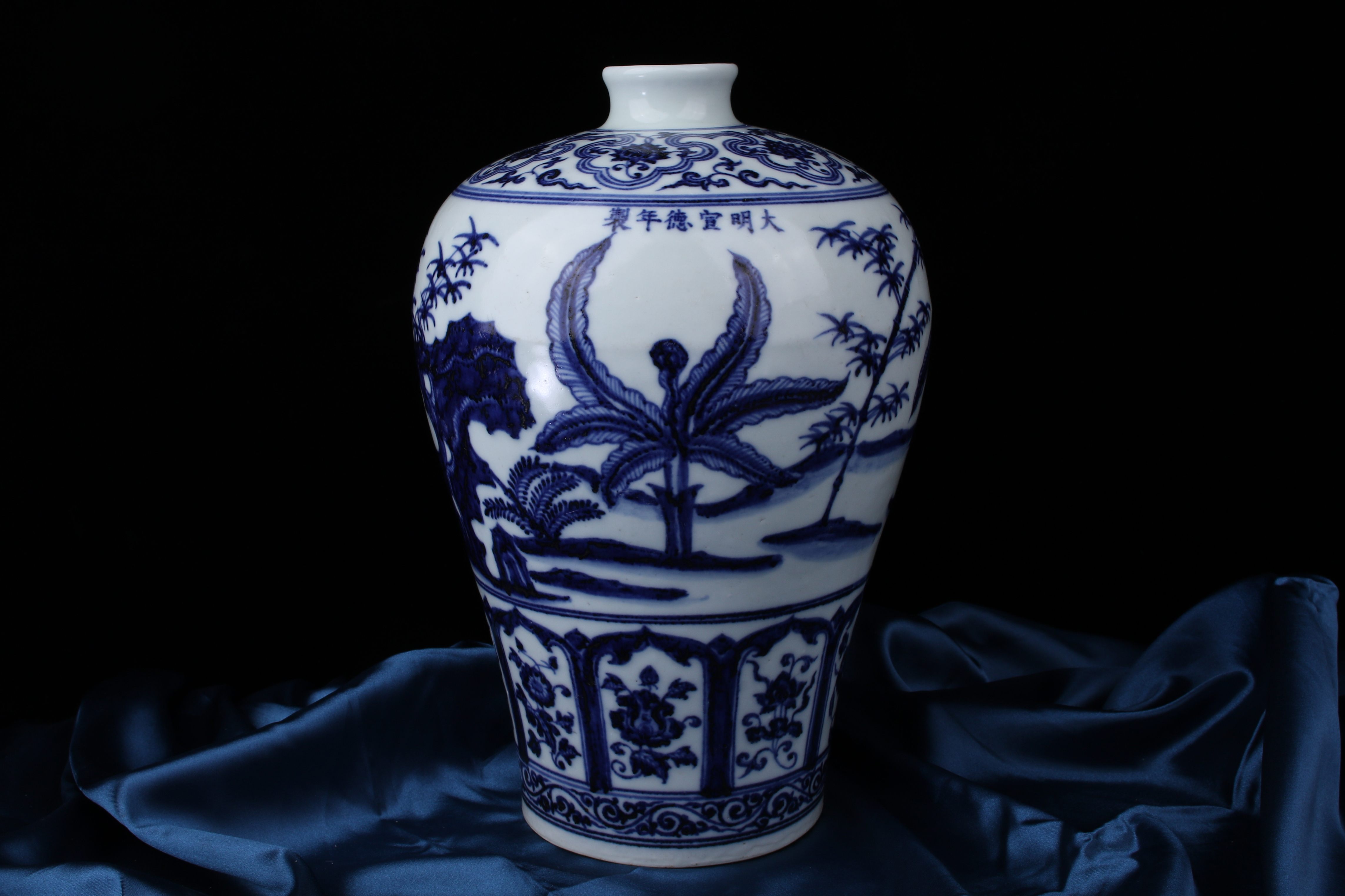 A0097. Blue and White Meiping with Bamboo and Rock
