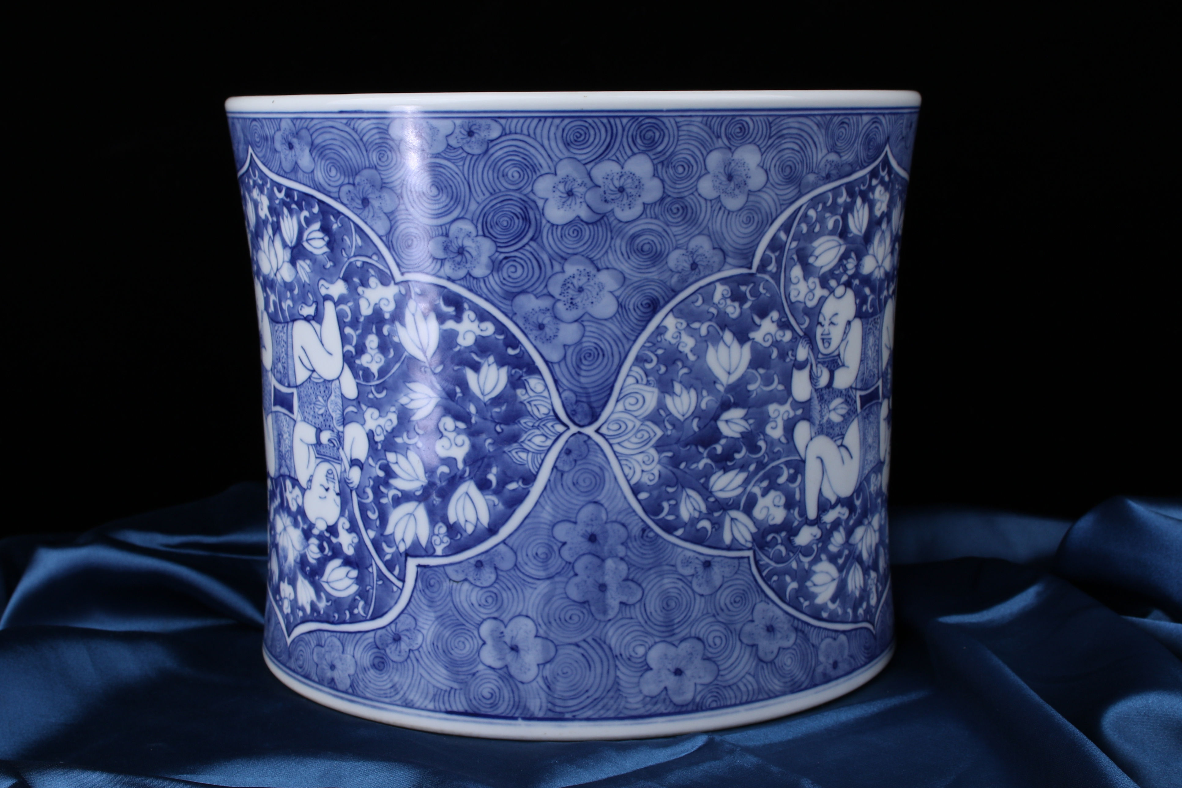 A0103. Blue and White Large Brush Pot with 'Continuous Blessing'